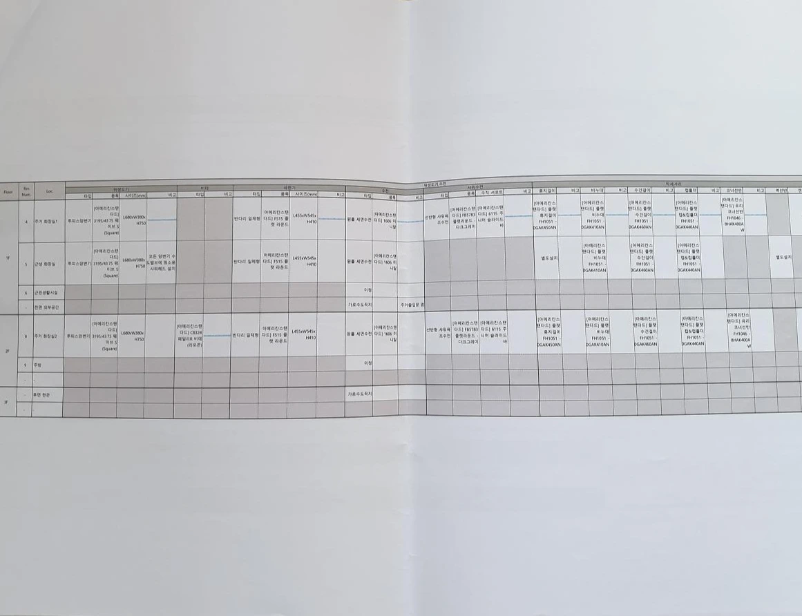 도면의 내부 마감 자재들은 제품과 업체까지 표기되어 있는데 나중에는 비슷한 제품을 고르면 된다는 것을 알았고, 업체명까지 있어서 오히려 비슷한 곳에 가서 살펴보면 되니 시간이 절약되었다.