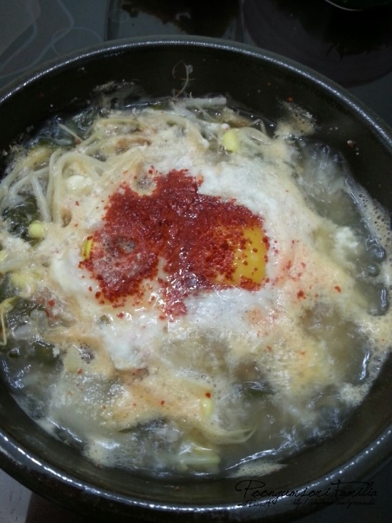 재료 : 콩나물, 계란, 황태, 파, 밥, 고춧가루, 새우젓