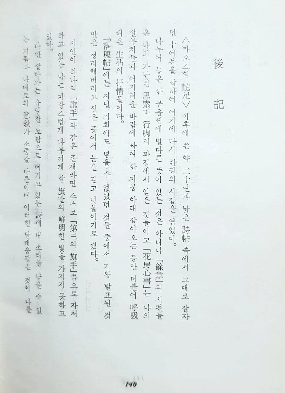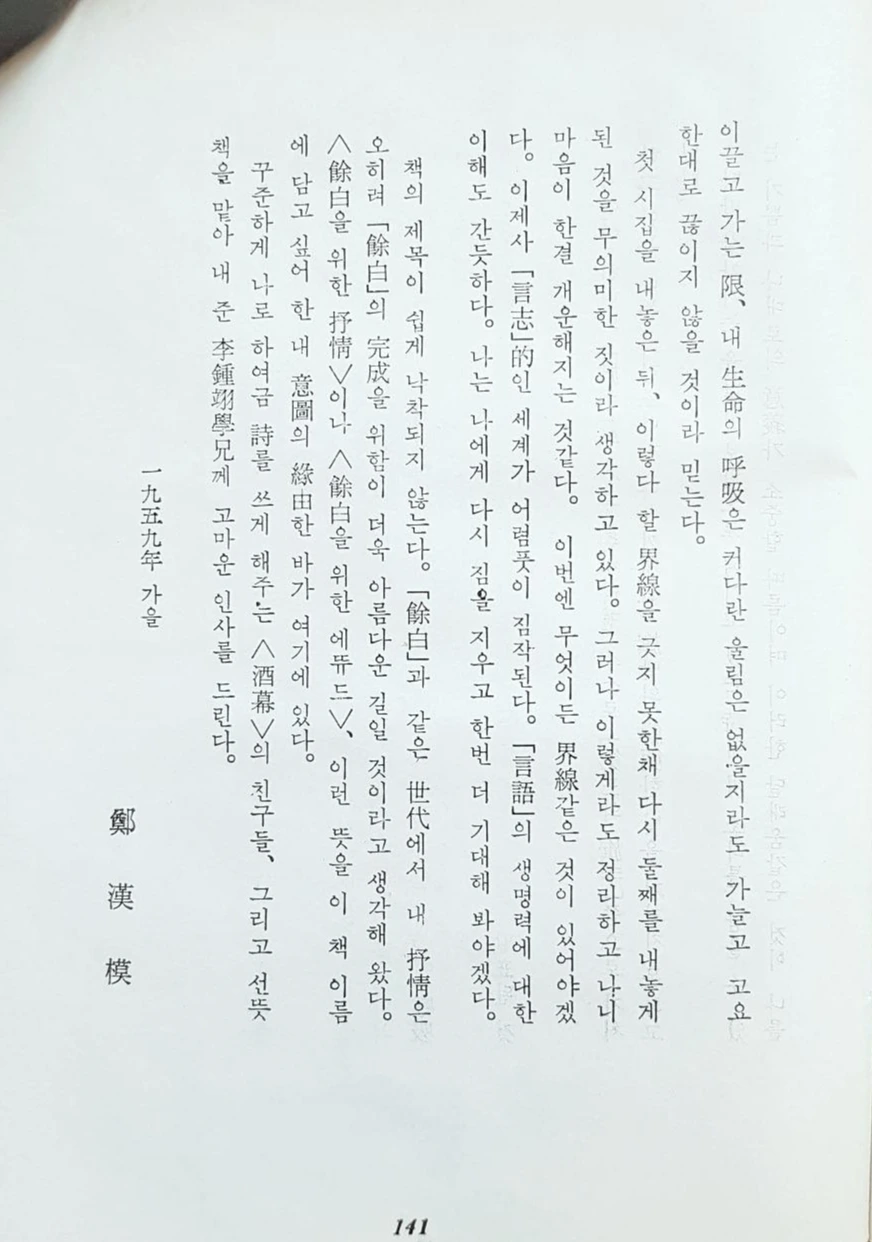 1959년 가을에 시집을 간행하면서 저자의 후기