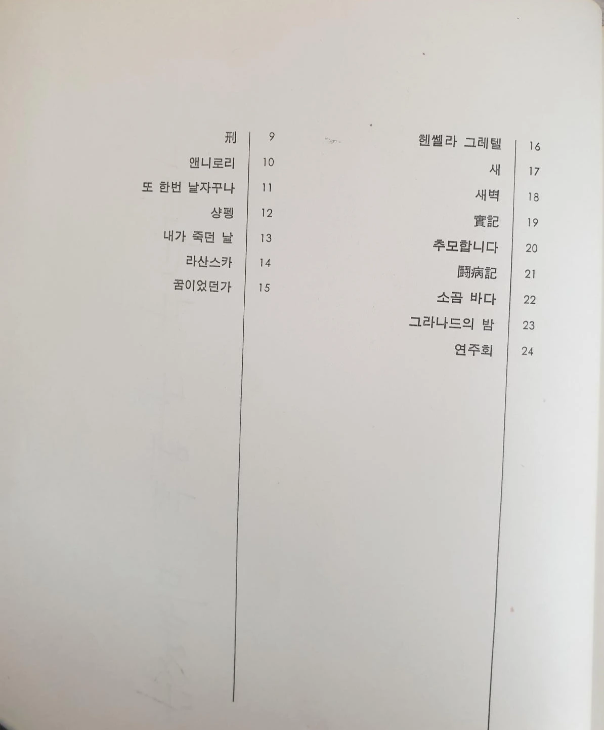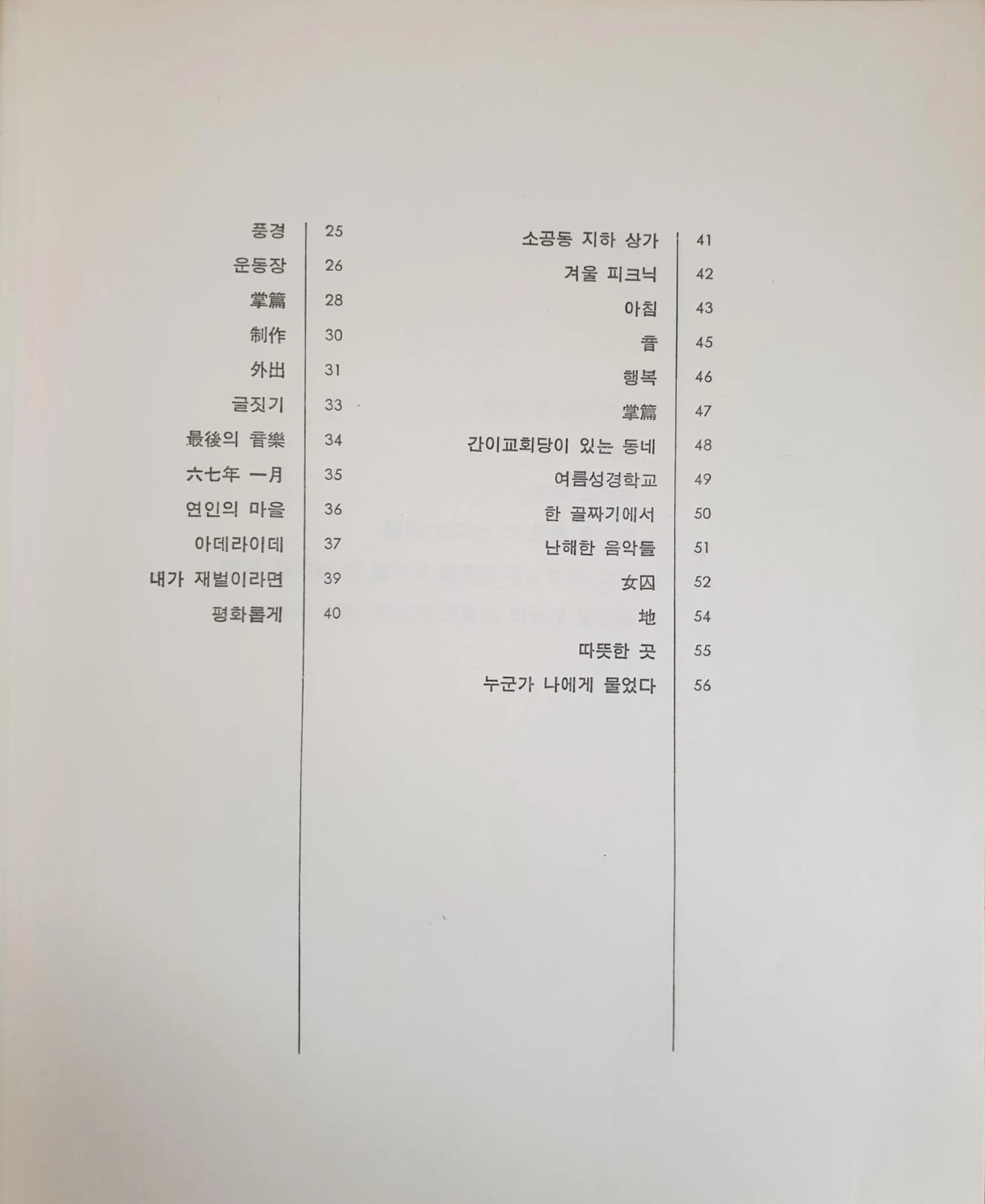 시집 목차, 시인의 육필 글씨