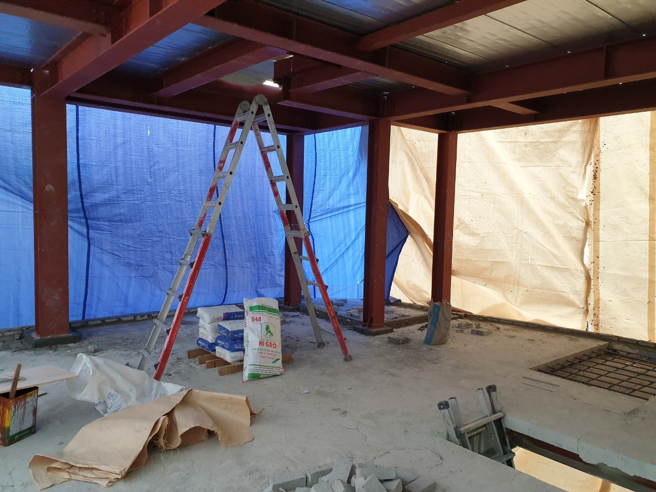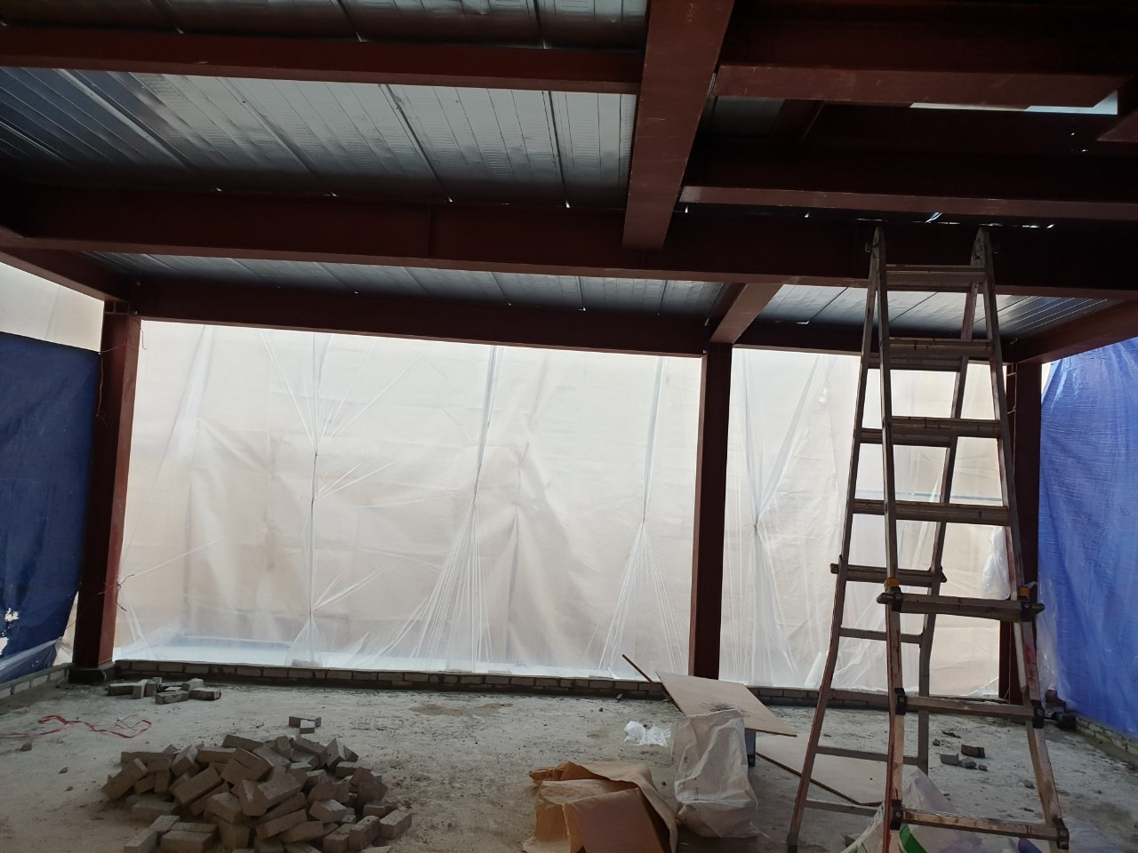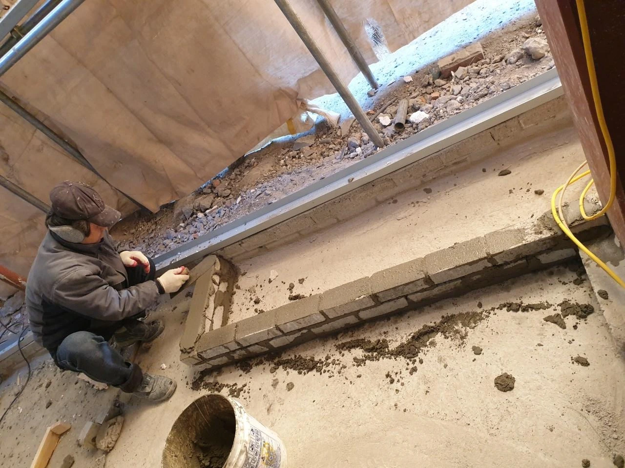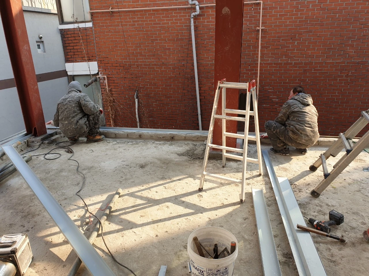 조적 양생을 위해 임시 가림막 작업도 해야 한다. 밖은 겨울이어서 온도가 떨어지지 않도록 신경을 많이 써야 한다. 겨울 이맘때쯤 시공이 완성되리라고 했던 설계 당시의 계획은 사라지고 시공이 계속되는 바람에 양생에 계속 신경을 많이 썼다.