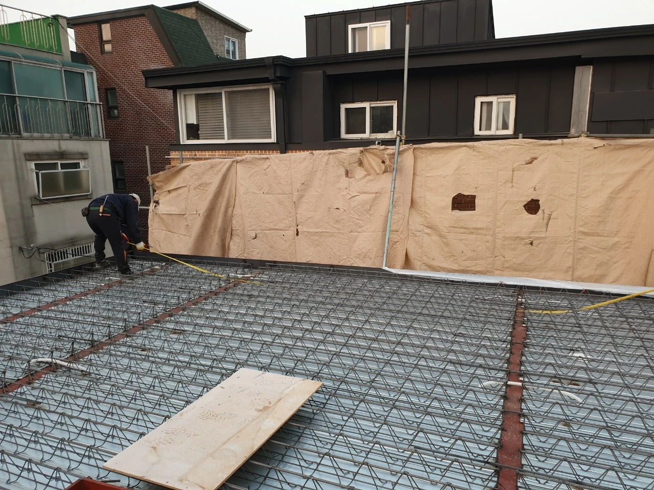 방수작업을 하면서 동시에 pir우레탄판넬 고정부분 작업도 한다.