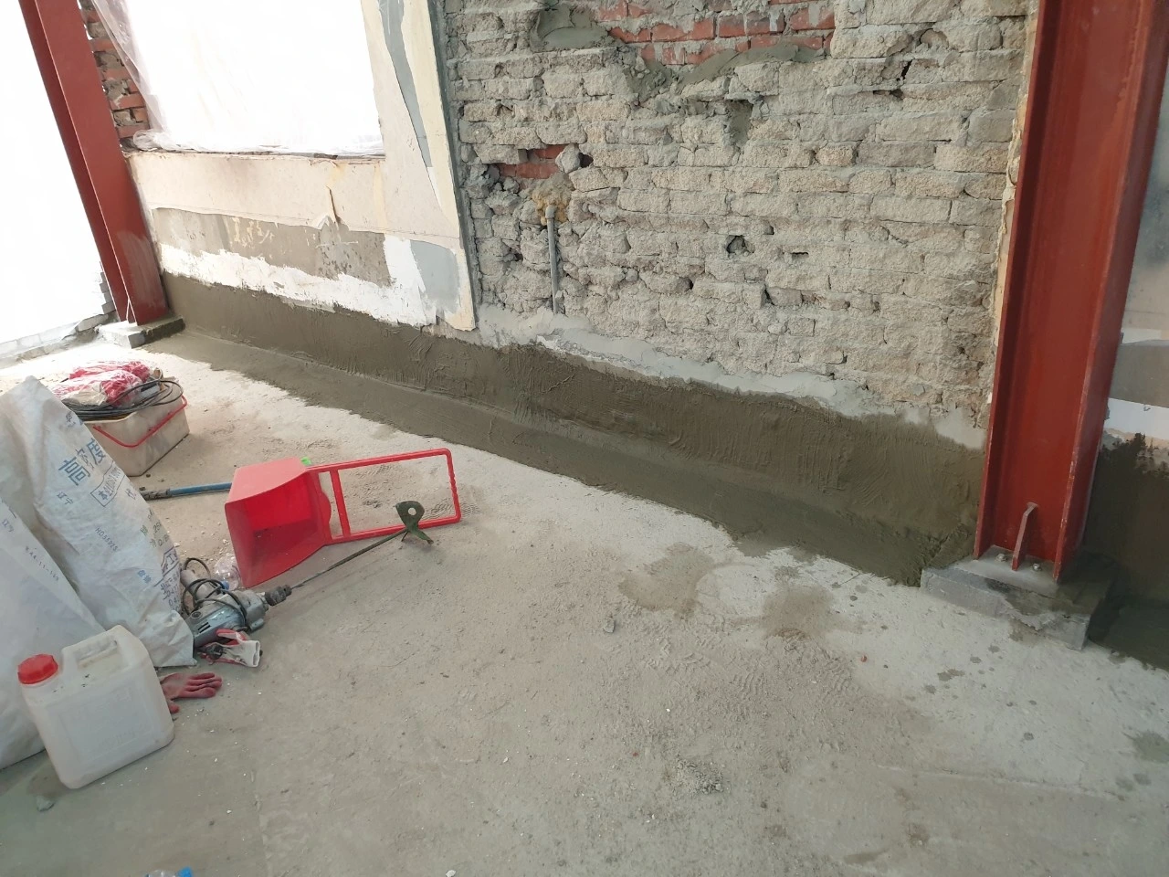 조적에 방수를 하려면 미장 등으로 방수 작업면을 만들어주어야 한다.