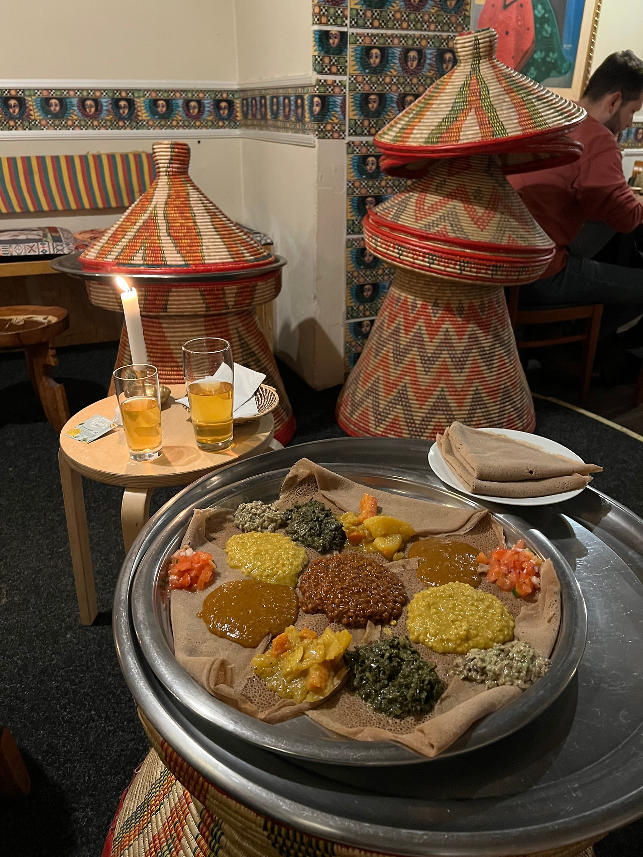 꽤 오랜 시간 미술관에 있었던 우리는, 저녁으로 에티오티아 식당에 처음 도전해 보았다! Bejte-Ethiopia라는 에티오피아 식당이었는데, 에티오피아 식당은 한국에서도 보기 힘들다 보니 들어서자마자 마치 에티오피아에 들어온 듯한 분위기가 신기했다. 있다 보니 다양한 인종의 사람들이 음식을 즐기러 왔는데, 만약 이곳이 한국이었다면 이렇게까지 인기가 있었을까 하는 생각도 들었다.