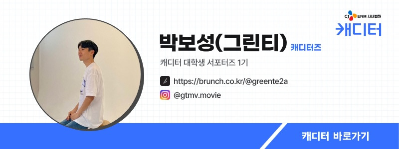 저는 이번 '캐디터 서포터즈 1기'로 캐디터를 활용해 다양한 영화 속 캐릭터를 소개할 뿐만 아니라, 캐디터의 소식을 낱낱이 전해드릴 예정입니다. 6, 7월 두 달간 캐디터의 다양하고 재밌는 이야기로 만나요! 많은 관심 부탁드립니다.