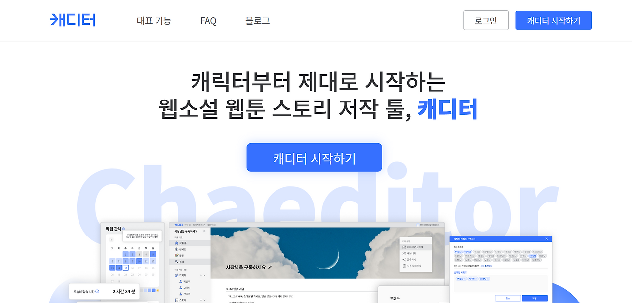 바로 콘텐츠 괴물기업, 콘텐츠 과몰입기업! 국내 콘텐츠계의 한 획을 긋고 있는 'CJ ENM'의 사내벤처에서 선보이는 '캐디터'입니다. 소개 멘트부터 든든하죠? '캐릭터부터 제대로 시작하는 스토리 저작툴' 아무리 좋은 스토리, 좋은 주제라도 '캐릭터' 하나만이라도 빈틈이 있으면 모든 것이 무너지죠? '캐디터'는 그 단단한 기반인 '캐릭터'부터 시작하는 스토리 제작 툴입니다.