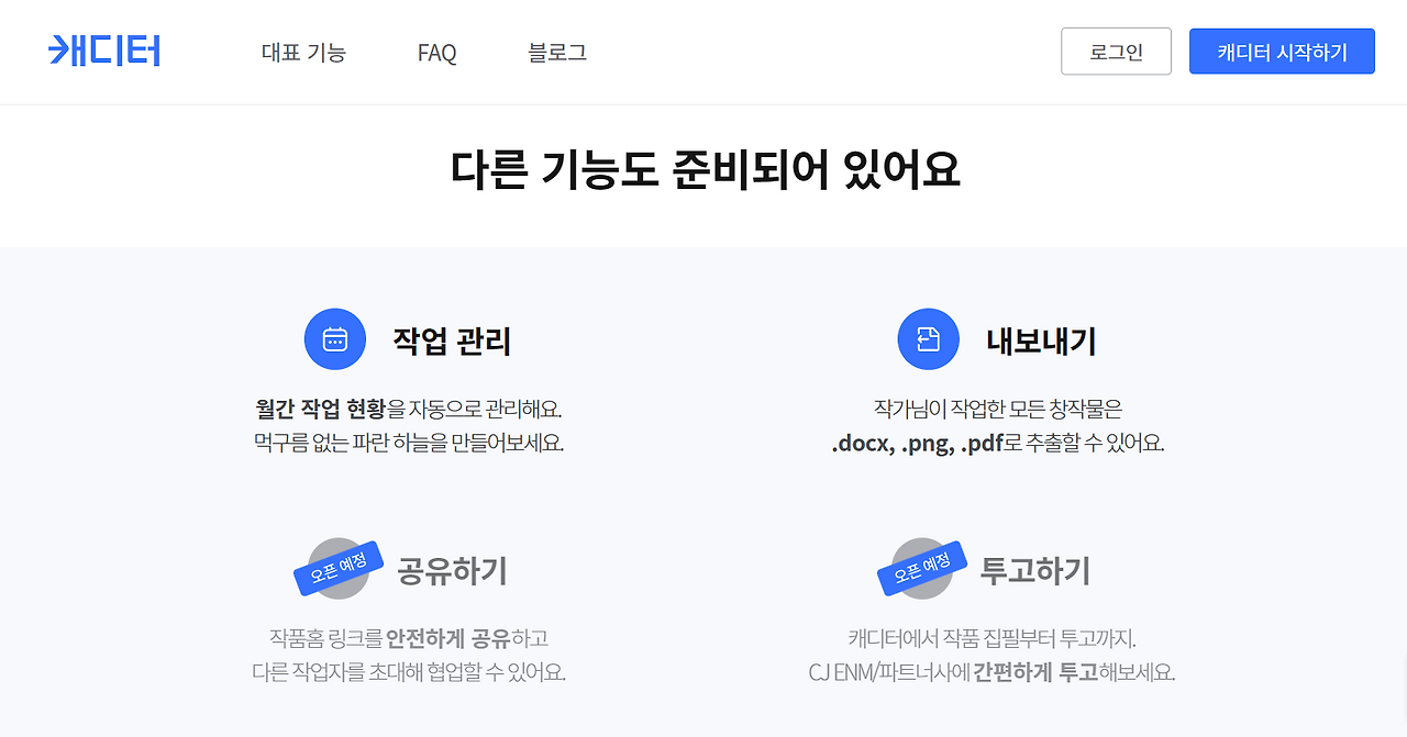 캐릭터 하나를 만들기 위해 얼마나 섬세한 작업이 필요한지, 저도 이번 '캐디터'를 활용해보면서 느꼈는데요. '캐디터'에는 이렇게 '캐릭터'를 구축하는 기능 외에도 관계도, 플롯 관리, 스토리 집필 기능이 가능하며, 창작물을 외부적으로 내보내고 공유하는 기능까지 오픈될 예정입니다. 그동안 작품 하나를 완성하기 위해 일일이 수작업으로 번거롭게 해야했던 모든 과정들이 이 '캐디터' 하나에 올인원으로 모두 들어가 있으니 이제 미래의 대서사시를 구축할 작가님들에게는 더할 나위 없이 완벽한 툴이 등장한 셈인데요.