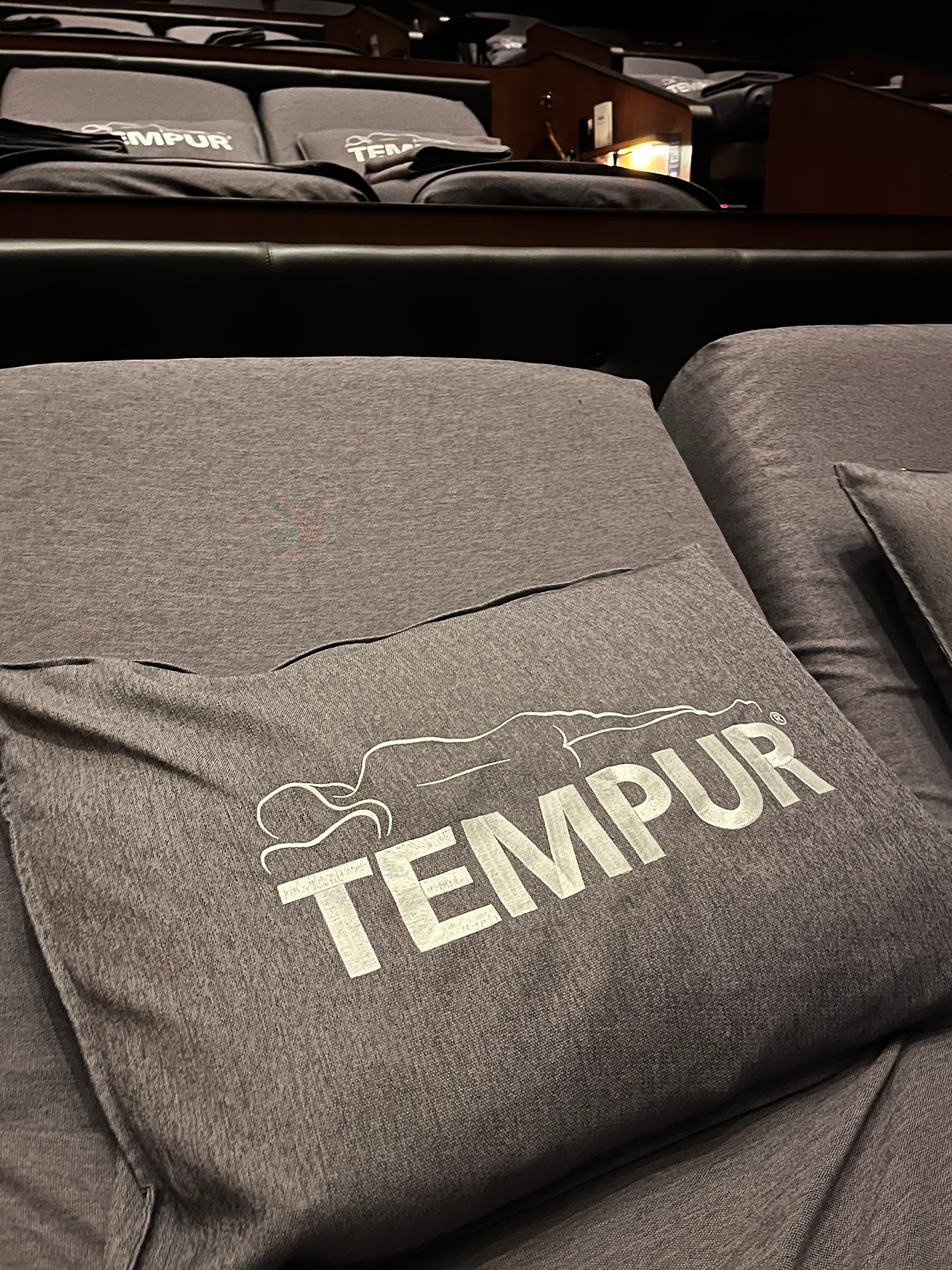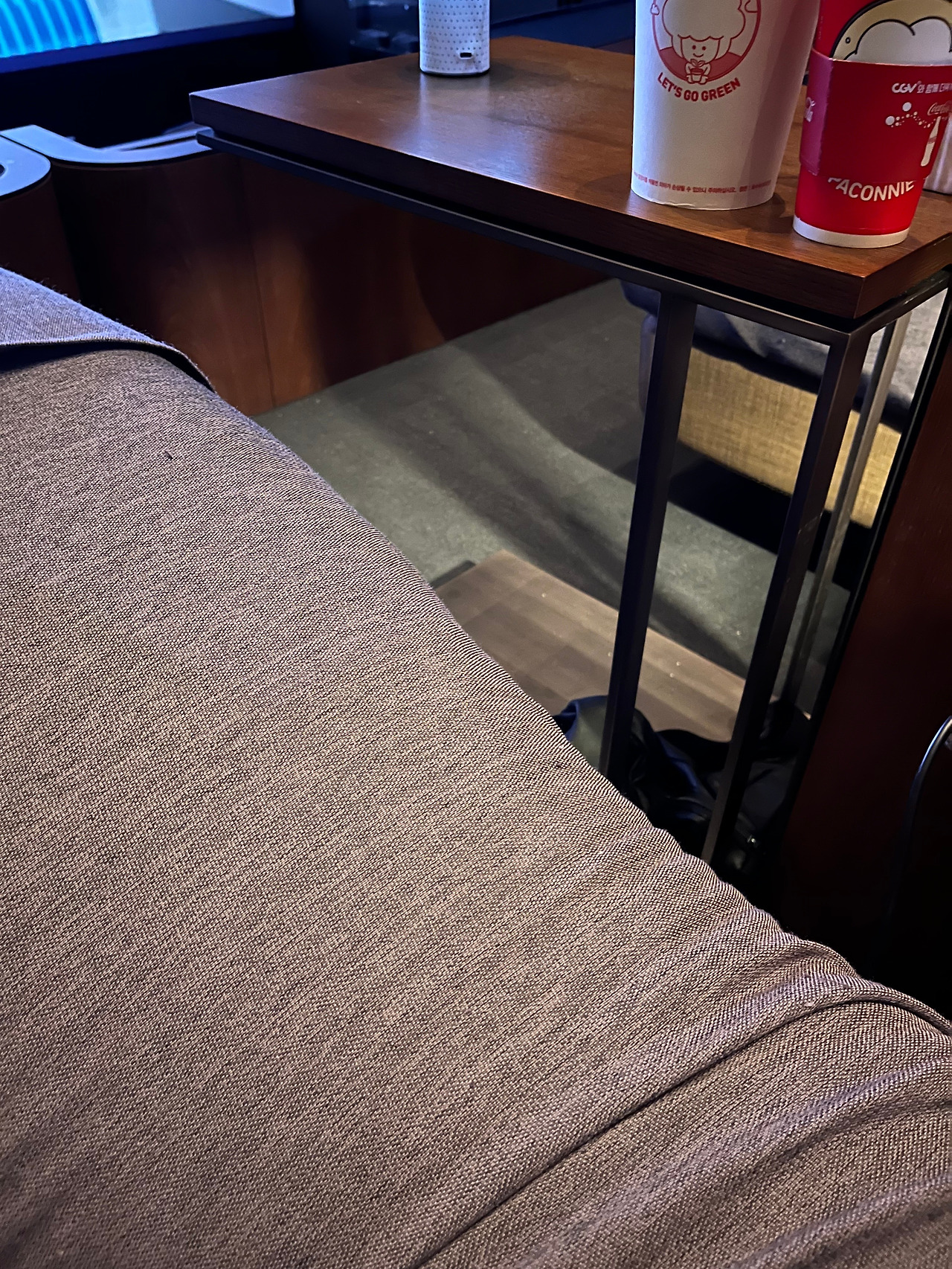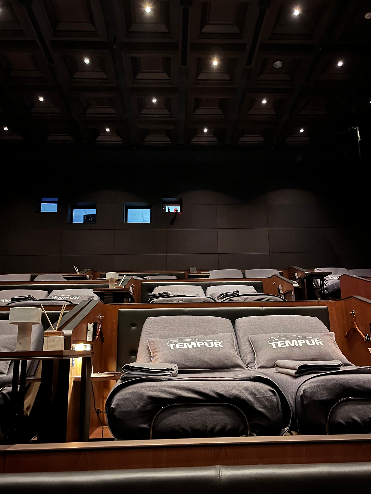 사실 들어서자마자 벌러덩 눕고 싶었지만, 본격적으로 즐기기 전에 상영관 내부 구경도 천천히 즐겨주었습니다. CGV 템퍼 시네마는 실제 덴마크 프리미엄 가구 브랜드인 'TEMPUR'와 협업해 관객들을 조금 더 편안하고 안정된 환경에서 영화를 즐길 수 있도록 만들어진 특별관입니다.