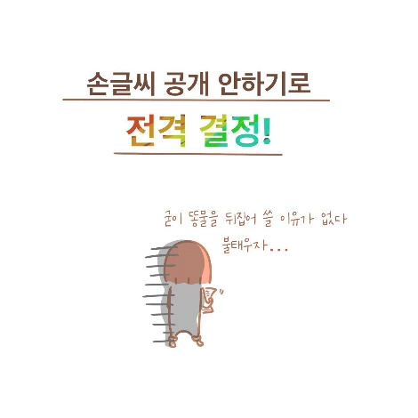 딱히 변명 거리가 생각나지 않는군. 대학생활 내내 술 먹느라 새벽에 집에 들어갔고 아빠가 병원에 계실 때도 서울에서 만화 그린다고 자주 내려오지도 않았다. 흠흠. 그래, 일단 내 글씨 어딘가에는 인격과 성격이 드러 날 수 있을지도 모르겠다. 하지만 다행히도 지금은 컴퓨터와 휴대폰으로 대부분의 글을 쓰는 세상 아닌가. 손글씨 따위 누가 쓴담! 예전에 포스트잇으로 붙여 놓았던 메모도 지금은 카톡으로 보내면 그만이다. 손글씨로 안 써도 되기 때문에 누군가에게 내 인격을 들킬 일 없이 오늘도 컴퓨터로 주절주절 있어 보이는 글을 폼 잡으며 쓰고 있다. 정말 좋~은 세상이다.