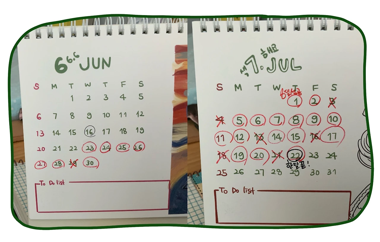 어제 실패했으니 한 달 연속이라는 기록은 이미 깨져서 도전할 이유도 없는데 제가 다음날 계단을 또 올랐더라고요. 그리고 엑스 표시 옆에 동그라미를 그리고요.