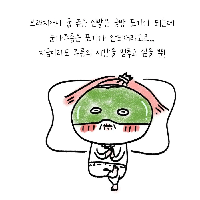 하지만 건강을 위해 미용을 포기한 것이 중년에 닥쳐 갑자기 일어난 일은 아니다. 안구건조 때문에 눈 화장은 20년전부터 포기했다. 아이라인이나 마스카라, 아이섀도 등은 쓸 수가 없었다. 툭하면 인공눈물을 떨어뜨려야 하는 눈에 눈 화장은 사치였다. 눈뿐만이 아니다. 스키니진이 유행했을 때도 혈액순환이 안되어 퉁퉁 붓는 것이 힘들어 널널한 통바지를 입었고, 와이어가 있어 가슴의 모양을 예쁘게 만들어주지만 동시에 엄청 가슴을 압박해서 소화불량을 유발하는 브래지어도 10년전에 다 버렸다. 대신 와이어 없고 신축성 좋은 스포츠브라 같은걸로 갈아탔다. 심지어 압박감을 최대한 안 받으려고 한치수 큰 걸로 샀다. 예쁘지만 가죽으로 만든 가방도 무거워서 들지 않은지 오래되었고, 역시 예쁘지만 굽이 높은 신발은 신발장에서 먼지와 한몸이 되어 있다. 미용보다 편함을 찾고, 편안함이 나의 건강이 될 것이라 믿으며 서서히 나는 나이들어가고 있었다. 생각해보니 서글플 일도 아니었네. 억지로 버티고 견디는 것이 아니라 자연스럽게 건강해지며 나이 들고 있는 중이니까.