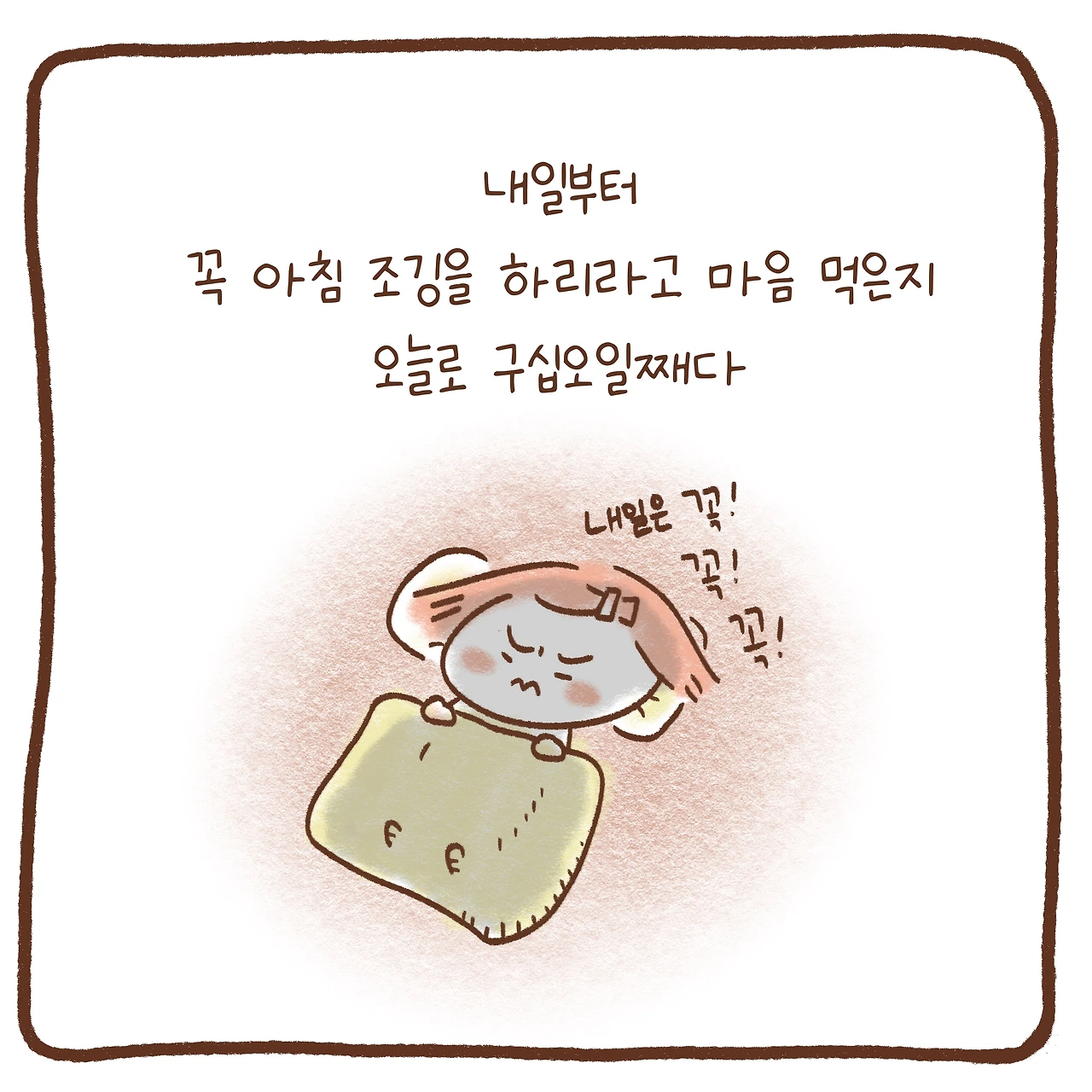 문득 얼마 전에 쓴 <홈트 성공하는 3가지 방법(성공률 100%에 가까움)>이 떠올랐다. 그렇다. 처음부터 무작정 밖으로 나가서 달릴 생각 하지 말고 한 단계, 한 단계 천천히 나아가다보면 어느샌가 아침 조깅이 익숙해지는 날이 오지 않을까?