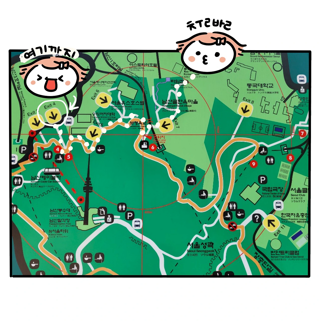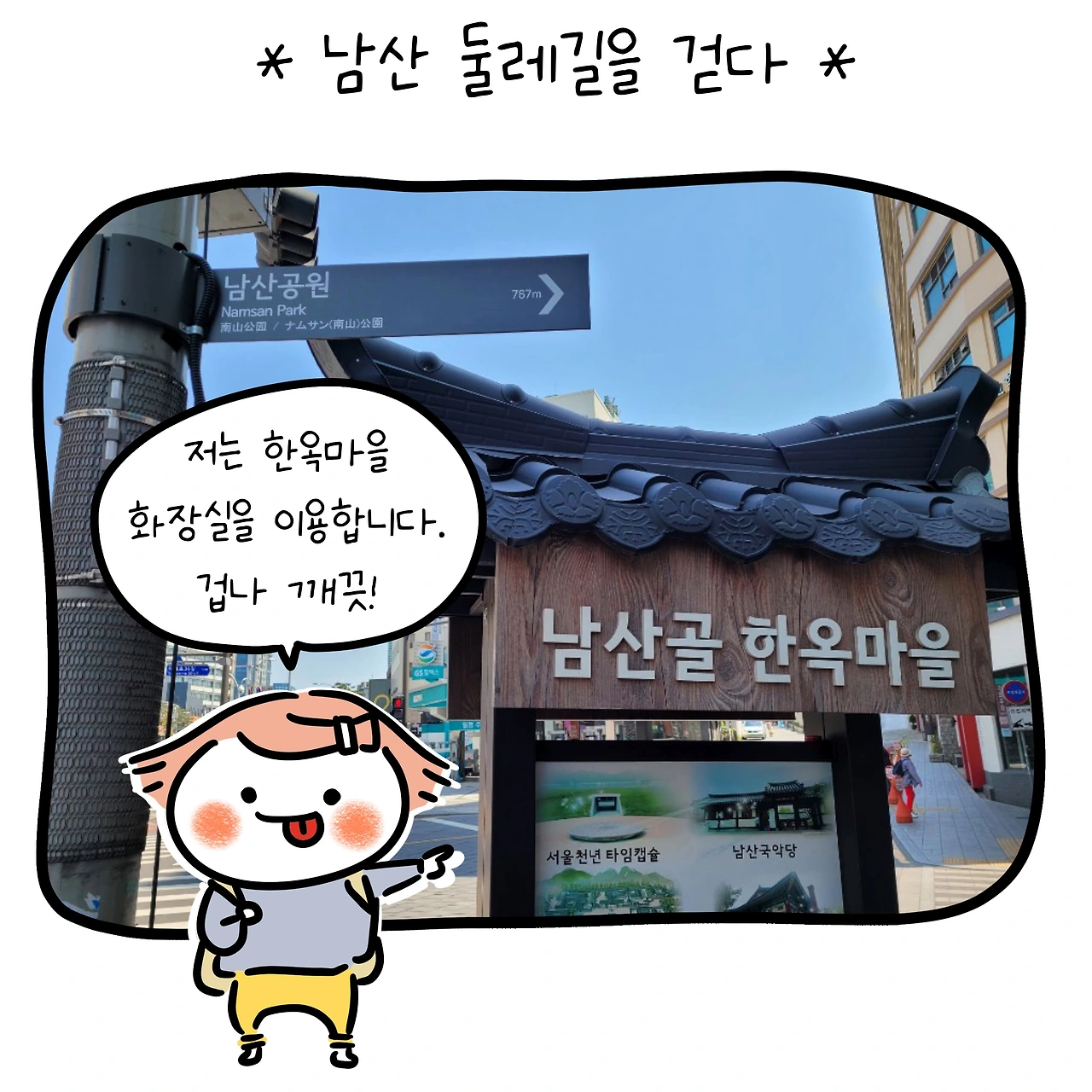 충무로역 4번 출구로 나와 '남산골 한옥마을'을 통과해서 동국대길로 올라갔어요.