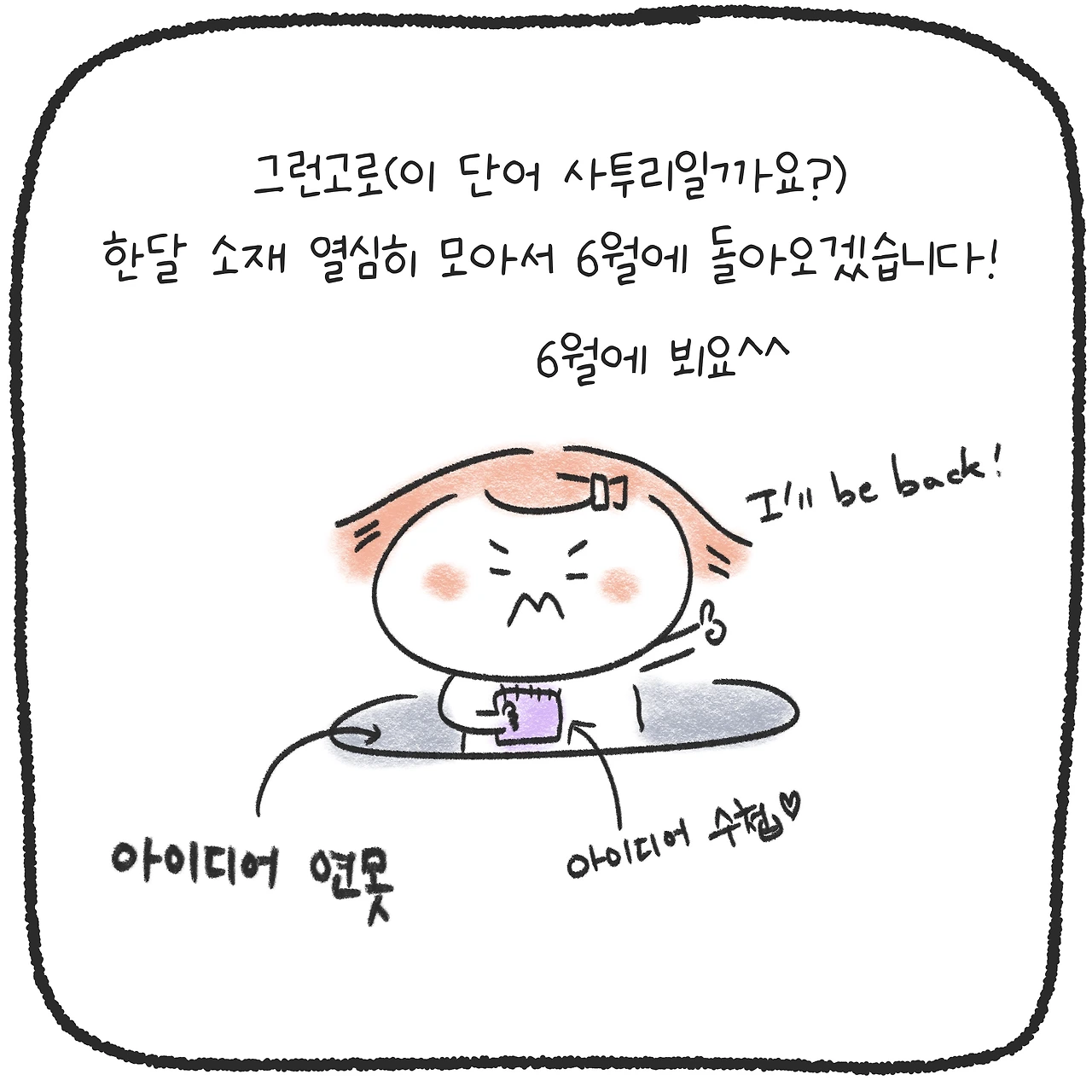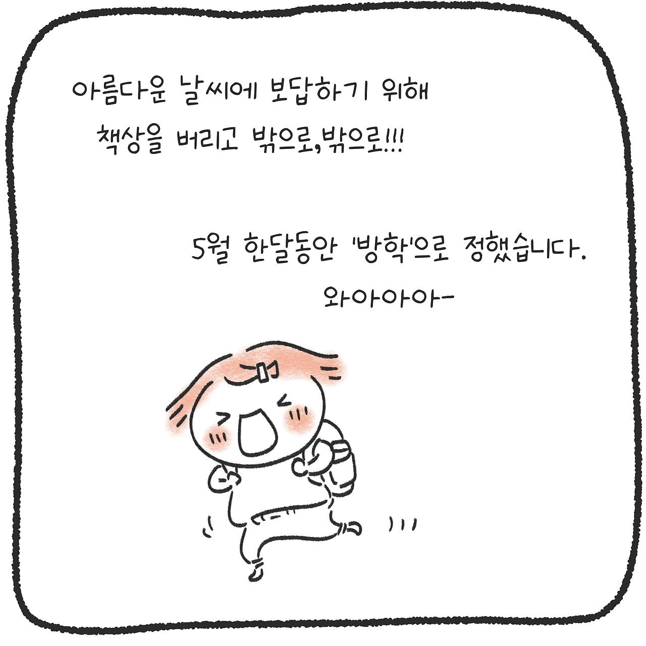 일상을 스케치합니다. [스케치하다] 동사: 1. 어떤 사건이나 내용의 전모를 간략하게 적다. 2. 실재하는 사물을 보고 모양을 간추려서 그리다. 5월과 10월은 쉽니다.소풍기간임