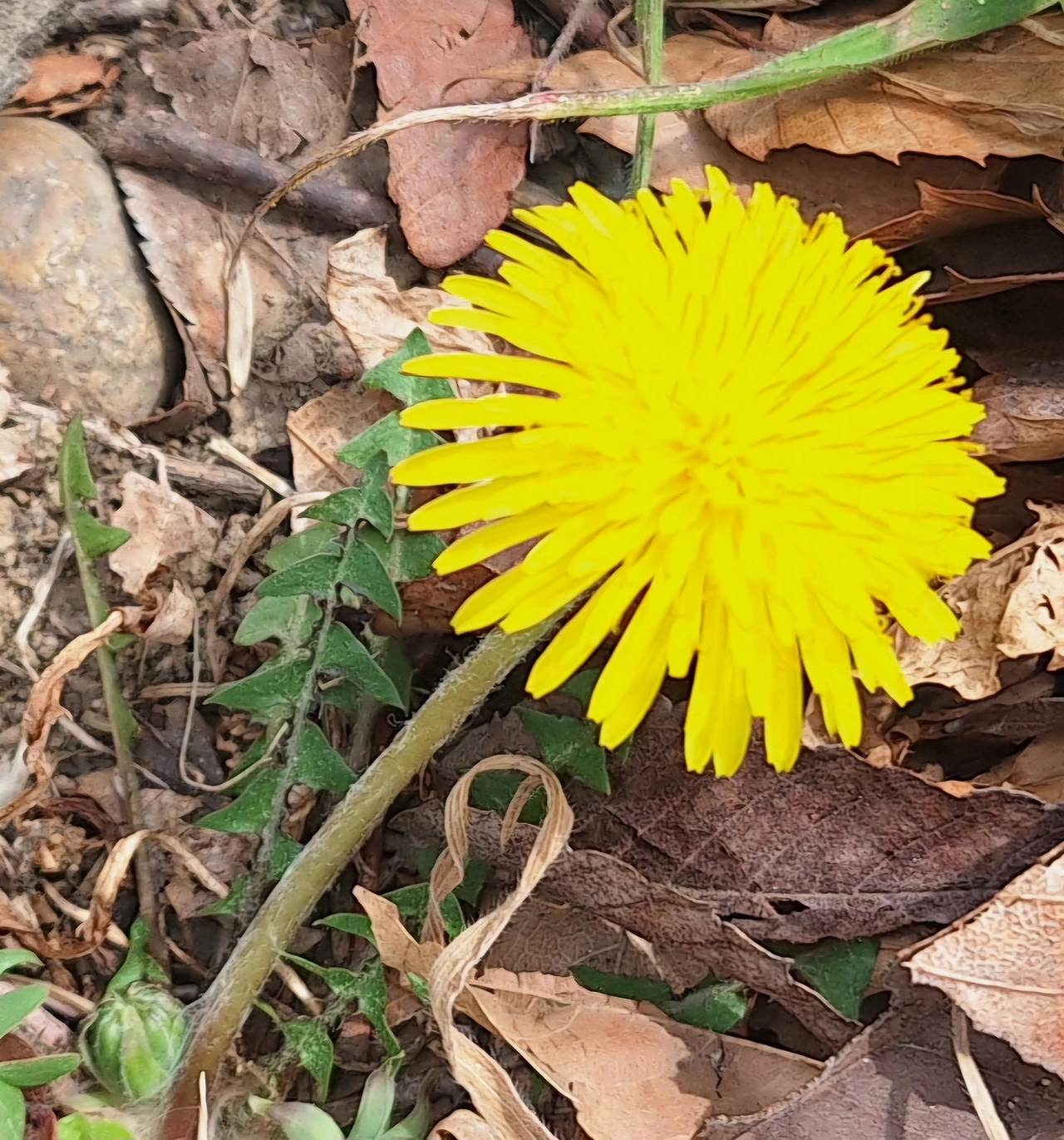 노랗고 분홍진 민들레와 벚꽃,