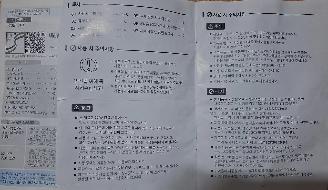 막상 열어보면 첫 장엔 ‘주의사항’과 ‘경고’가 자리한다.