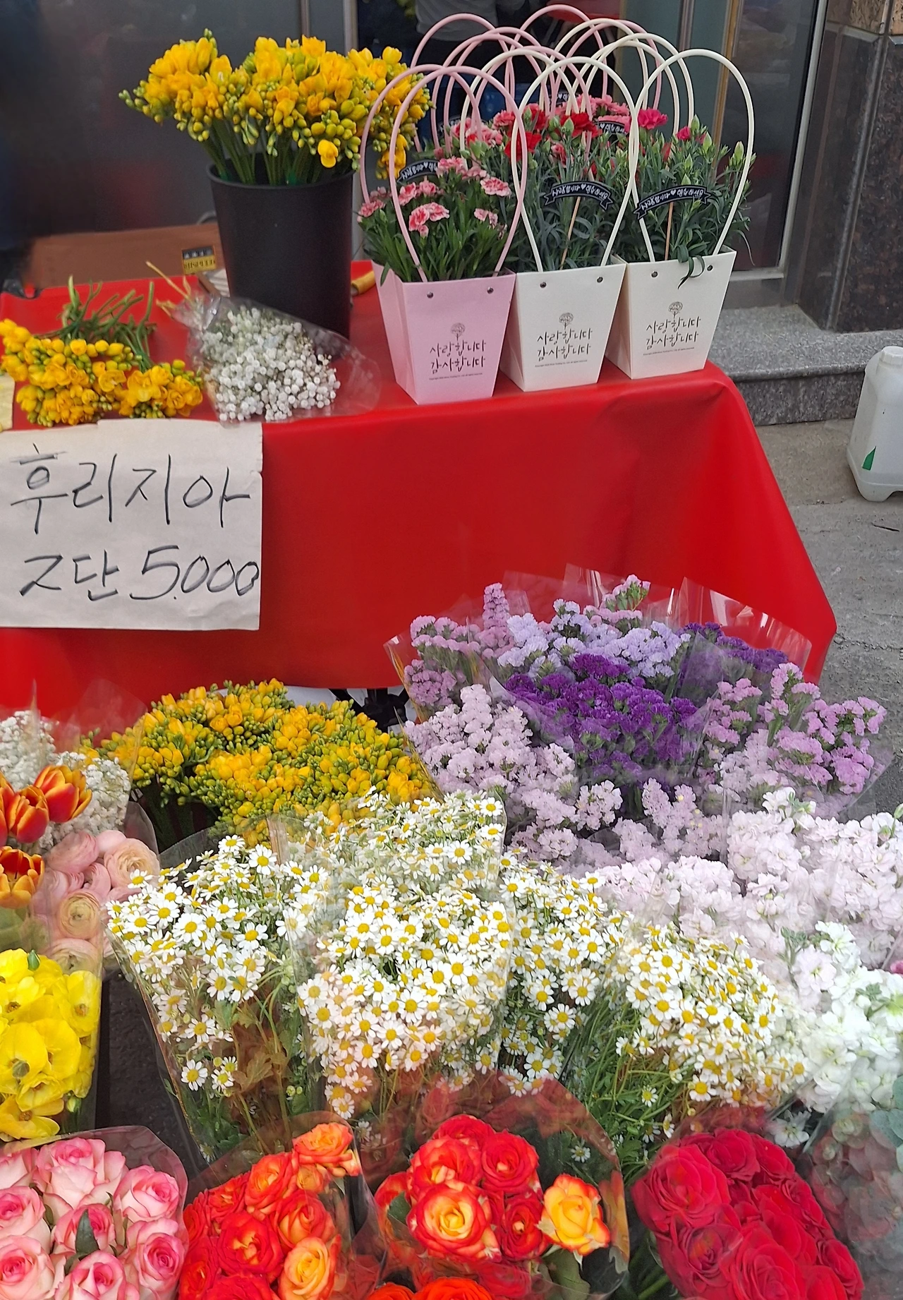 호떡집 맞은편, 평소에는 눈에 띄지 않던 꽃 매대가 시선을 끈다.