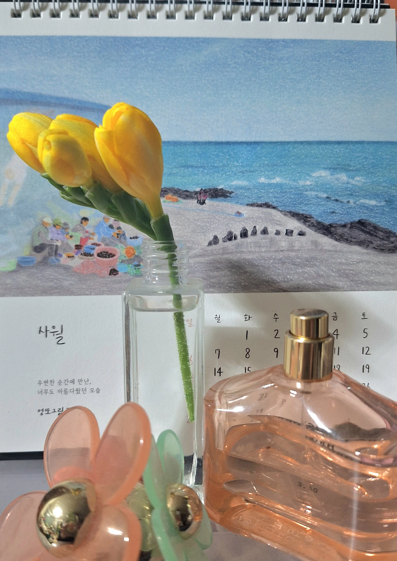 햇살 한 줌을 살짝 쬐어준 뒤, 집안 곳곳 시선 머무는 곳마다 꽃을 놓았다.
