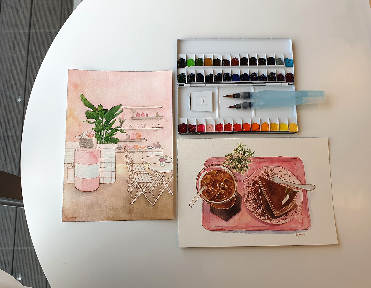 수업은 5월 9일에 런칭되고, 지금은 얼리버드로 신청하실 수 있는 시기이고요. 이번에 제작하는 온라인 강의는 입문자를 대상으로 하는 것이니만큼 그림을 이전에 배워본 적이 없으시거나 배운 시기가 오래되어 기초를 탄탄하게 닦고 싶은 분들께서도 잘 따라오실 수 있도록 도구에 익숙해지는 법이나 드로잉과 수채화의 기초(선 긋기, 투시도법, 구도, 명암과 양감 등)부터 차근차근 알려드릴 예정입니다. 또 수업 중에 다루는 주제를 우리 주변에서 흔히 볼 수 있는 자연물, 작은 소품, 카페에서 볼 수 있는 디저트와 음료, 내/외부 공간 전경, 여행지에서 볼 수 있는 풍경까지 다양하게 다룰 예정이기 때문에 조금 더 다양한 예시작이 있는 수업을 원하시는 분께 특히 추천해드리고 싶고요. 수업을 얼리버드로 신청하신 분 중 10분을 추첨하여 저의 최근 출간 도서 <달콤한 수채화 한 잔> 사인본을 증정하고, 또 25분을 추첨하여 클래스101 수강생분께만 제공해드리는 특별 엽서 세트(4종 1세트)를 증정할 예정이니 부디 많은 관심 부탁드리겠습니다.