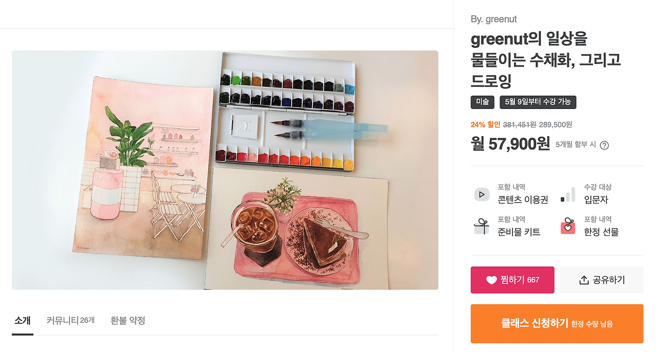 greenut X 클래스101 온라인 수채화/드로잉 클래스 수강생 모집 공지