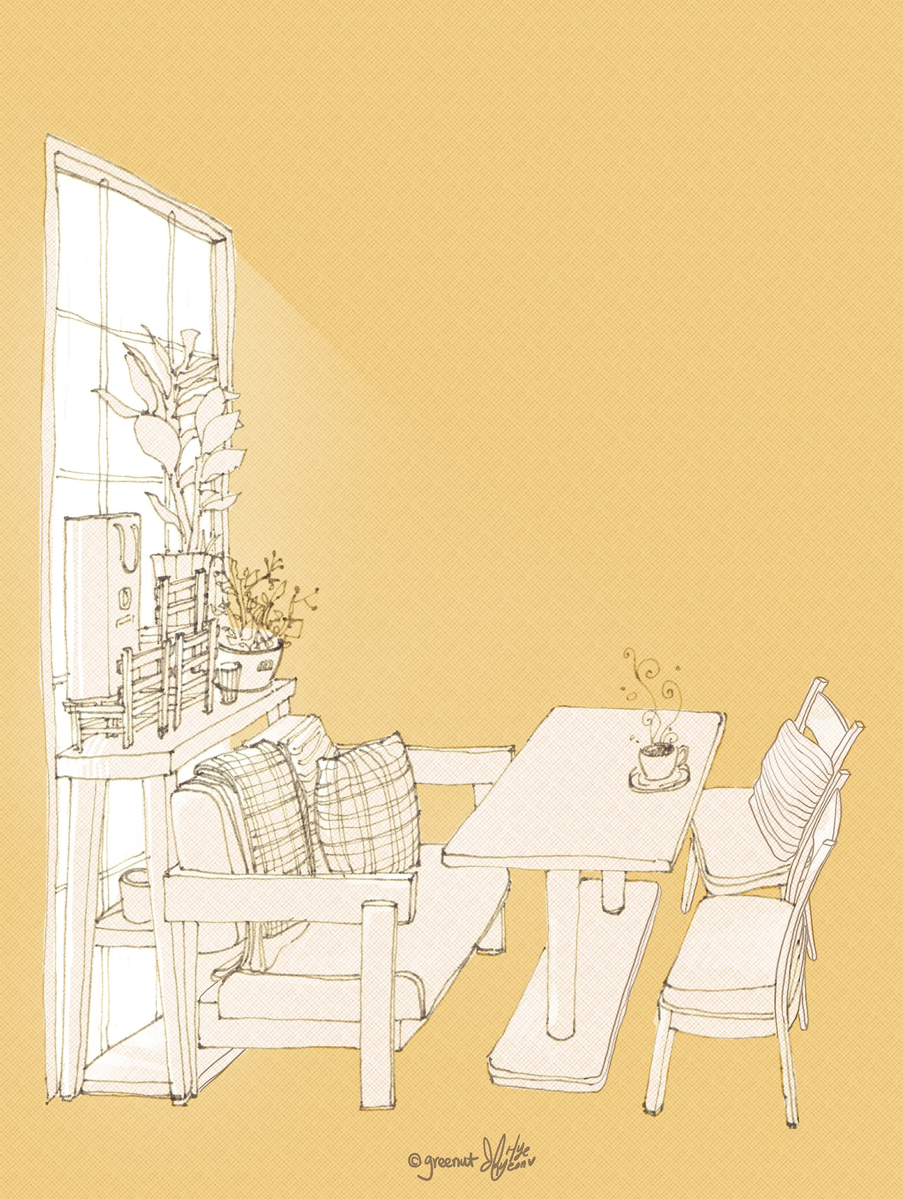 카페 '키다리 아저씨와 모카포트'에서, 하네뮬레 드로잉북에 코픽 멀티라이너로 그림.