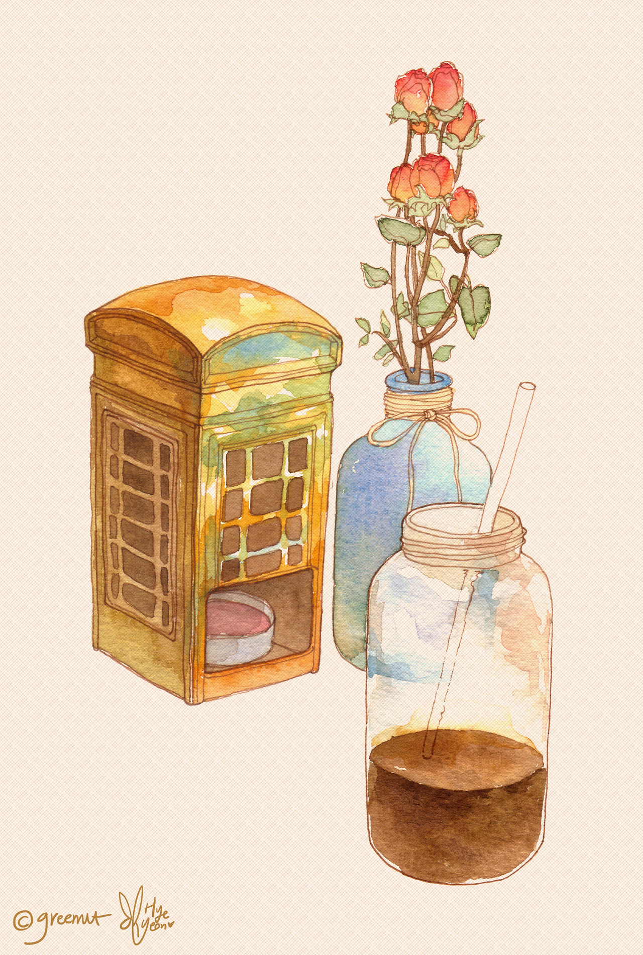 내 마음도 모르고, 종이에 펜과 수채물감으로 그림.