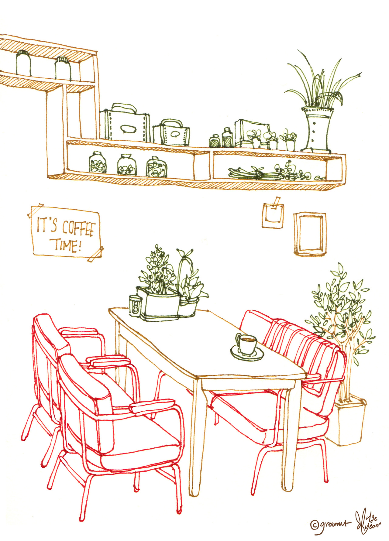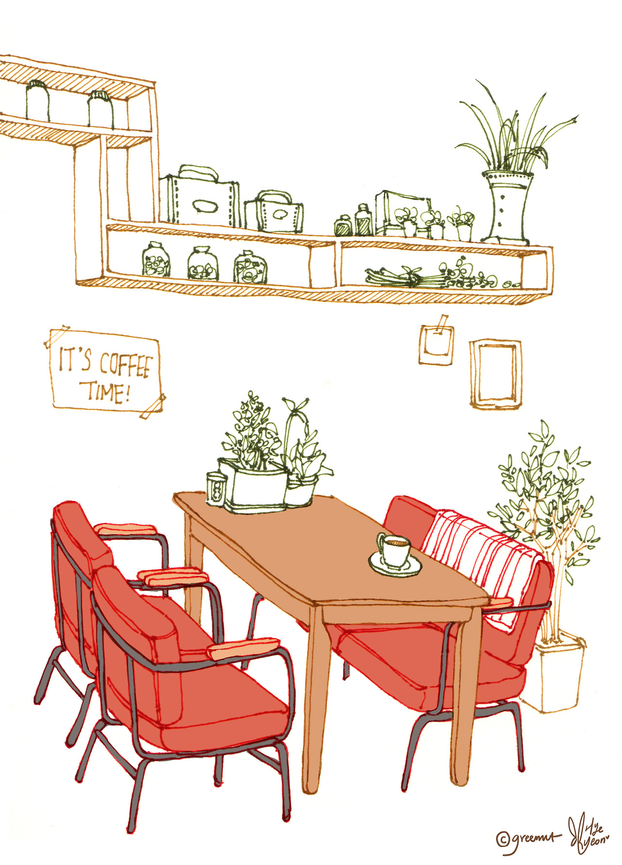 그림을 그리는 동안 입에 머금은 커피 한 모금은 적당히 쌉싸름하고, 아주 조금 외로웠으며,