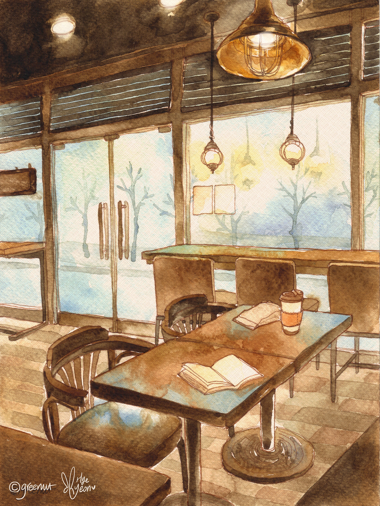 카페 드로잉 16. 겨울날의 낙 - 종이에 펜과 수채물감으로 그림