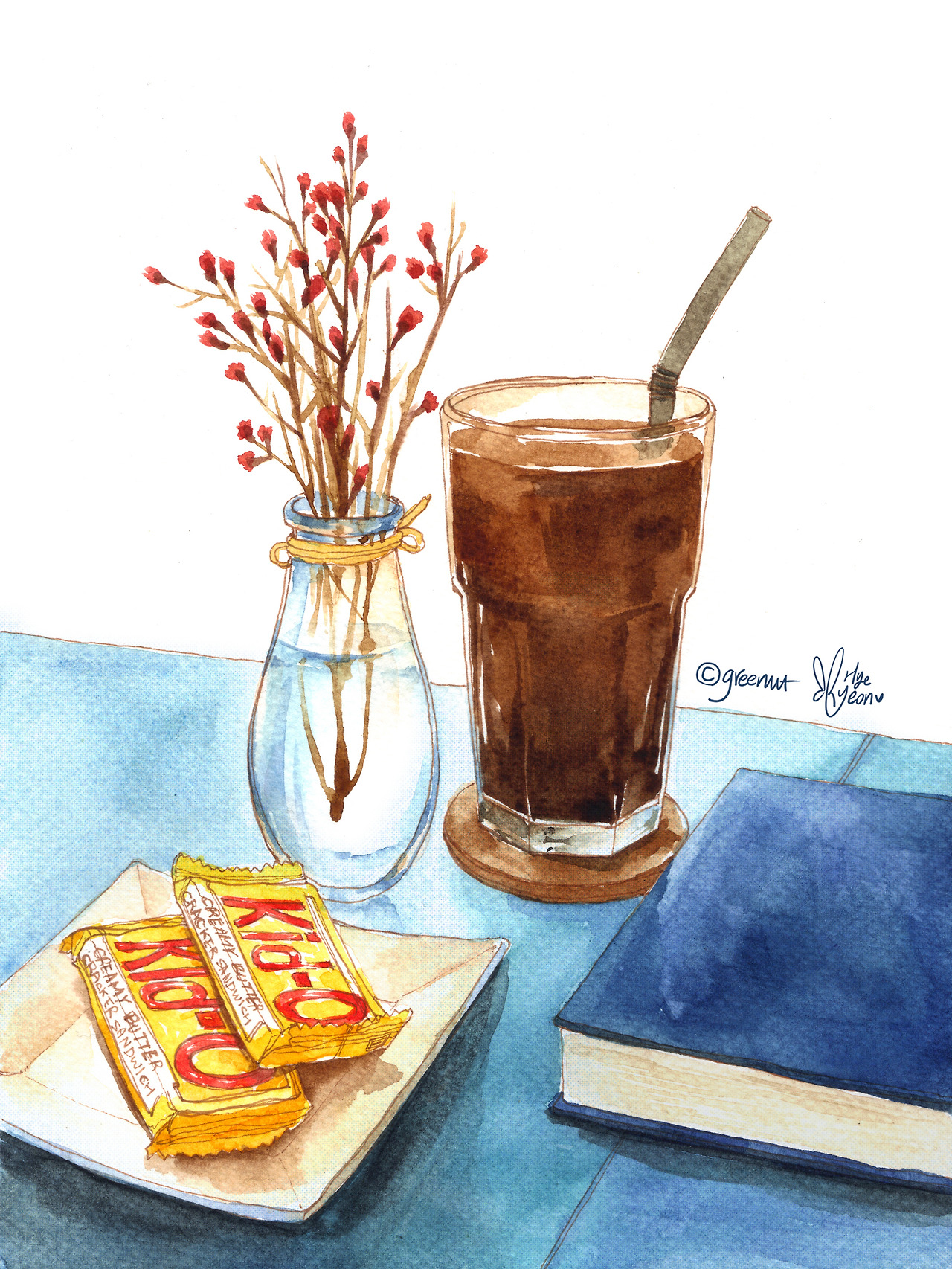 모두 파란색이라 행복한 오늘 - 종이에 펜과 수채물감으로 그림