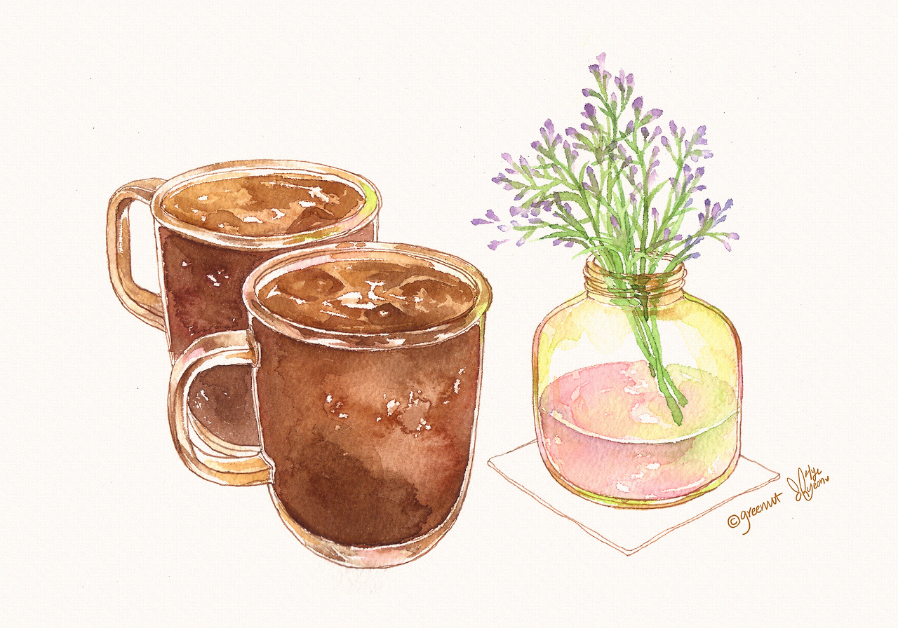 -커피의 끝맛에는 기분좋은 나른함2017 / 254 x 178 mm / Pen, Watercolor on paper©greenut(Hye ryeon Kim)
