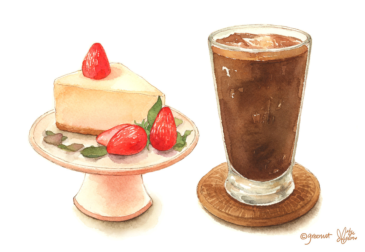 진한 아메리카노 한 모금, 딸기 치즈 케이크 한 조각과