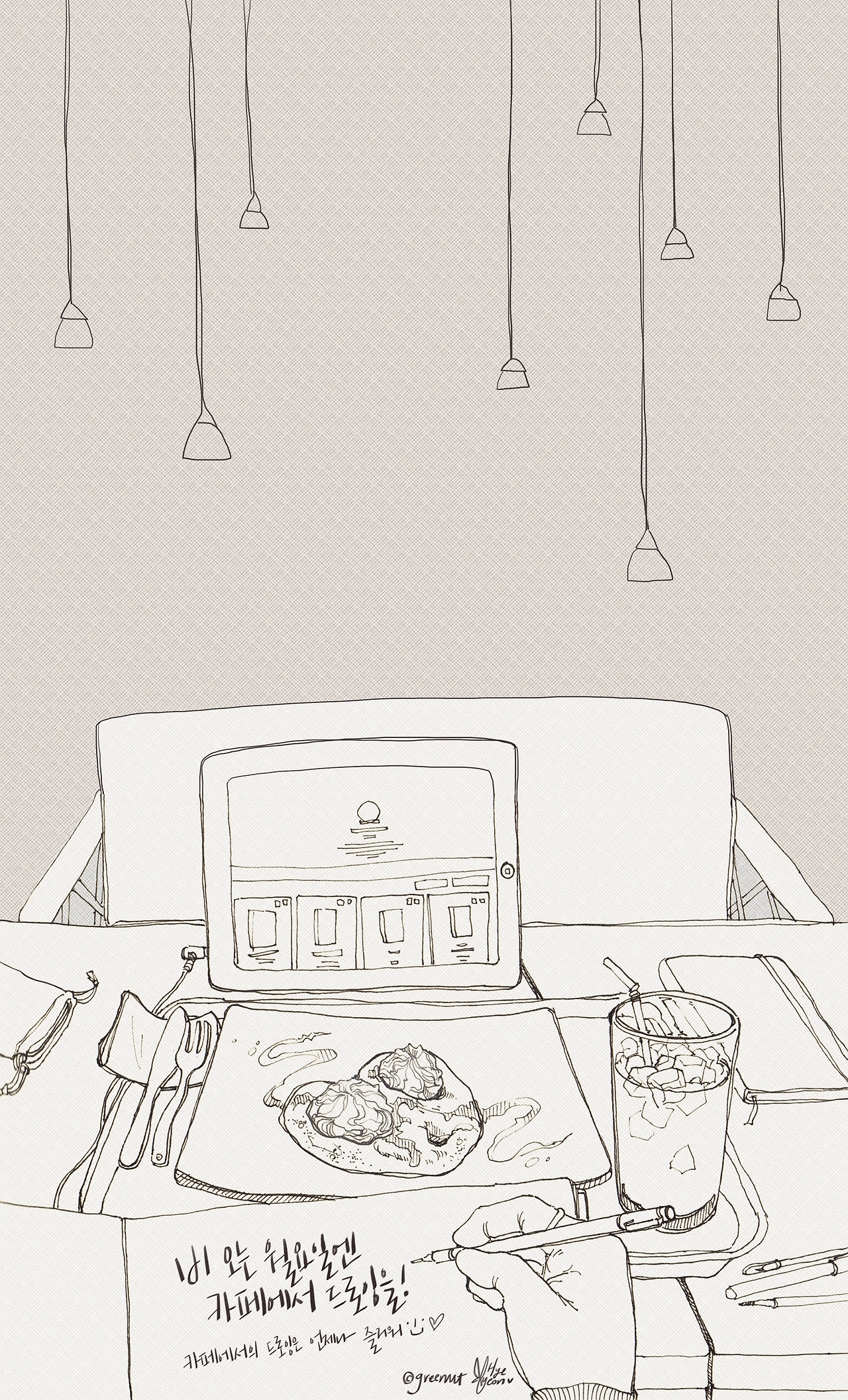 그렇지만 비가 오는 날 분위기 좋은 카페에서 커피를 마시며 그림을 그리고 있다 보니 평소 싫어했던 비 오는 날의 습기도, 빗소리도, 그해 벚꽃과의 이별을 가져올 빗줄기도 조금은 따뜻하게 느껴졌다.