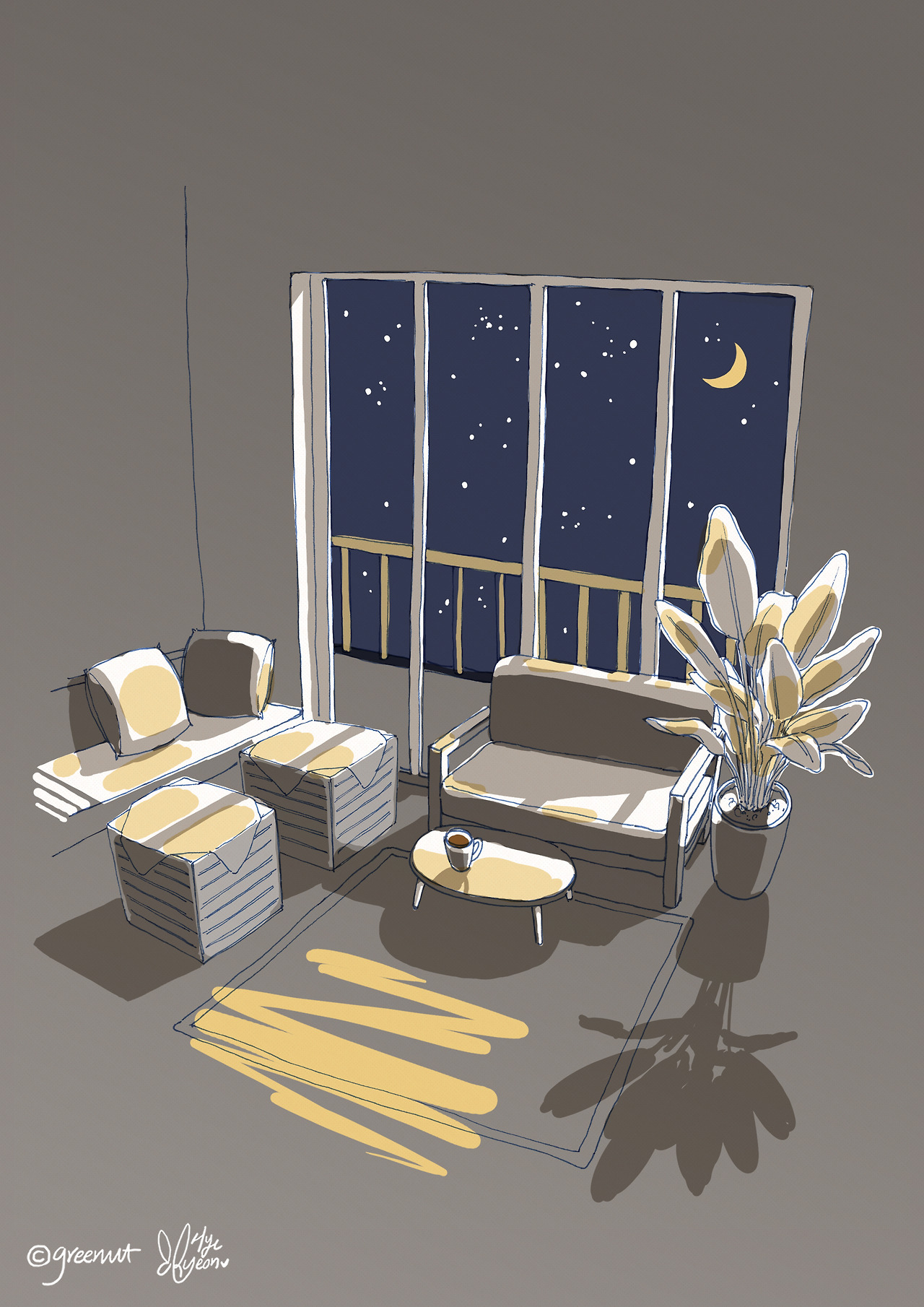 카페 드로잉 26-달빛이 스며드는 카페