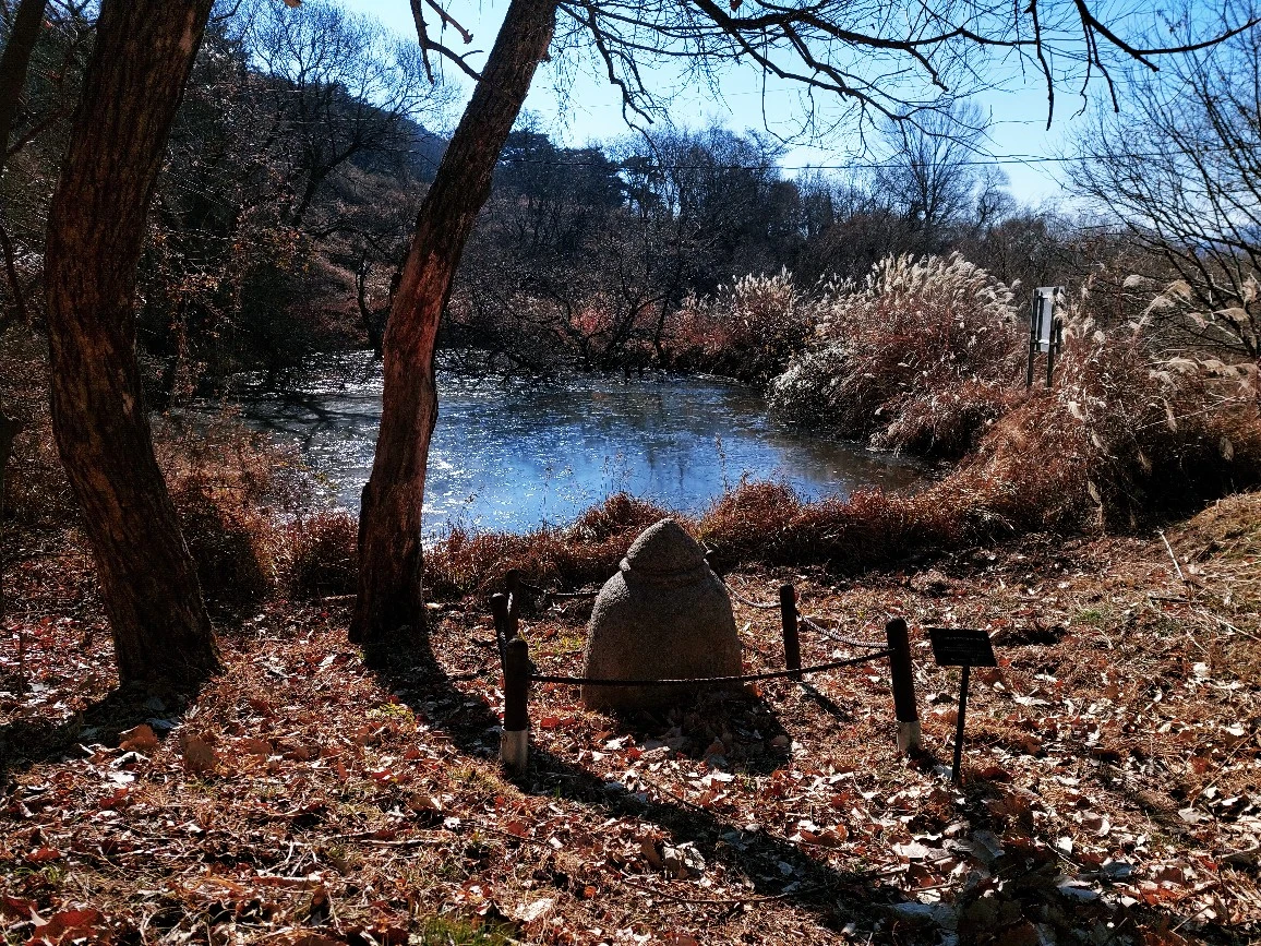 근처를 설렁설렁 걷는다. 아래로 길이 있어 가 본다. 줄기를 물속에 늘어뜨린 나무가 서 있는 작은 물웅덩이가 있고, 그 앞에도 부도 한 기가 물을 앞에 두고 좌선에 든 스님처럼 앉아있다. 바람도 멈추었고 사방에 볕이 가득하여 따듯하다. 나도 그 옆에 쪼그리고 앉는다. 좋다! 세상 부러울 것이 없다. 평화롭고 자유롭다.