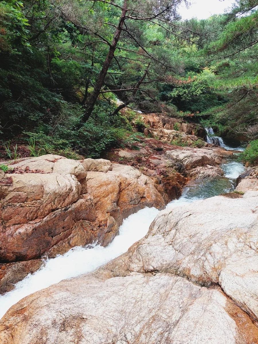 작은 새들이 모여 노는 숲길을 지나 산정호수 길과 만나는 곳에 이른다. 다시 물소리가 힘차게 쿵쿵거린다. 하, 이곳에서 양말을 벗게 될 줄은 몰랐다. 평소엔 좁은 물길인데 오늘은 어디를 봐도 내 짧은 다리로 폴짝 건너뛸 수가 없겠다. 이 계곡물은 용장마을의 식수로 쓰이기에 입수를 금하고 있지만 별 수 있나 양말을 벗고 찰방찰방 물을 건넌다. 핑계 김에 잠깐 발을 담그고 선다. 시원하다. 하얗게 이는 물보라는 내 몸과 마음에도 일어 묵은 상념을 씻어낼 것만 같다.