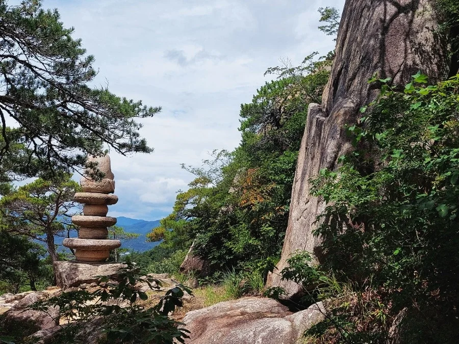 산길을 벗어나기 얼마 전 내 앞을 무언가 휘리릭 지나는 것을 본다. 작은 초록색 뱀이다. 놀라 우뚝 멈췄는데 하는 양을 보니 제가 더 놀란 모양이다. 정신없이 길을 가로지르더니 그 아래 숲 바닥으로 절벽에서 몸을 툭 던지듯 떨어지는 거다. 뭐, 다치지는 않았을 거라 걱정은 하지 않는다. 그저 나보다 더 놀란 뱀이 우스워 키득키득 웃었다. 아무래도 언제나 산의 짐승들이 사람 기척에 더 놀라는 것 같다. 나는 최상위 포식자 사람이다. 어흥, 놀라 어서 도망가거라!(실은 내가 무서우니라)