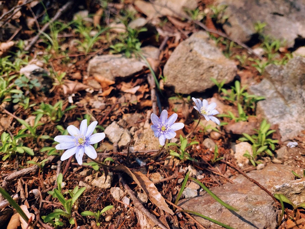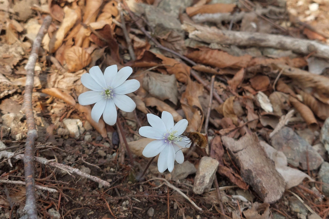 확실히 청노루귀다 할 수 있는 건 두 송이 정도고 꽃술 주변에만 살짝 보랏빛 도는 거의 흰색에 가까운 게 많다. 그럼에도 엄연히 청노루귀다. 지난주엔 휘파람새 소리에 깜짝 기뻤는데 청노루귀 선물까지 받을 거라고는 정말 꿈에서도 생각지 못했다. 이쁘다, 이쁘다, 이쁘다니까~ 노래가 절로 나온다. 꿀벌 없는 이른 봄산에 나만큼이나 기쁜 재니등에가 정지 비행을 하며 꿀을 빤다. 작은 곤충들도 온몸을 꽃에 비비고 있다. 전엔 꽃을 예쁘게 담고 싶어 빨리 떠나라 성화했지만 이젠 기쁘게 지켜본다. "부지런히 수분을 도와줘, 꽃들이 더 많이 피어나게."