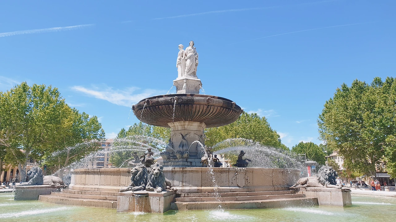 로마 제국 집정관이었던 가이우스 섹스티우스(Gaius Sextius Calvinus)가 이곳 지하수를 발견해 도시를 설립한 게 엑상프로방스의 시작이다. 그래서 물과 이 도시는 떼려야 뗄 수가 없는 관계가 되어버렸다. 실제로 시내 곳곳엔 크고 작은 분수가 백 개 이상 위치해 있다. 도시 입구에 있는 호똥드 분수(la Rotonde)부터 이름 그대로 이끼가 가득 껴있는 이끼 분수(Fontaine Moussue)까지 절대 똑같지 않은 분수가 남프랑스의 강한 햇빛을 막아주고 있다. 그리고 매일 이른 아침, 청소부가 소화관에 호수를 꽂아 시원하게 물줄기를 뿜어 도시 곳곳을 청소하는 모습은 매우 이색적이다. 무엇보다 로제 와인의 중심지가 바로 엑상프로방스다. 보기만 해도 싱그럽게 만드는 분홍색을 간직한 로제 와인은 깨끗한 물로 만들어야 제대로 된 맛을 낼 수 있다고 한다. 이 지역의 북쪽엔 산에서 물이 내려오고 남쪽엔 지중해가 있으니 로제 와인을 생산하기에 제 격이 아닐 수 없다.