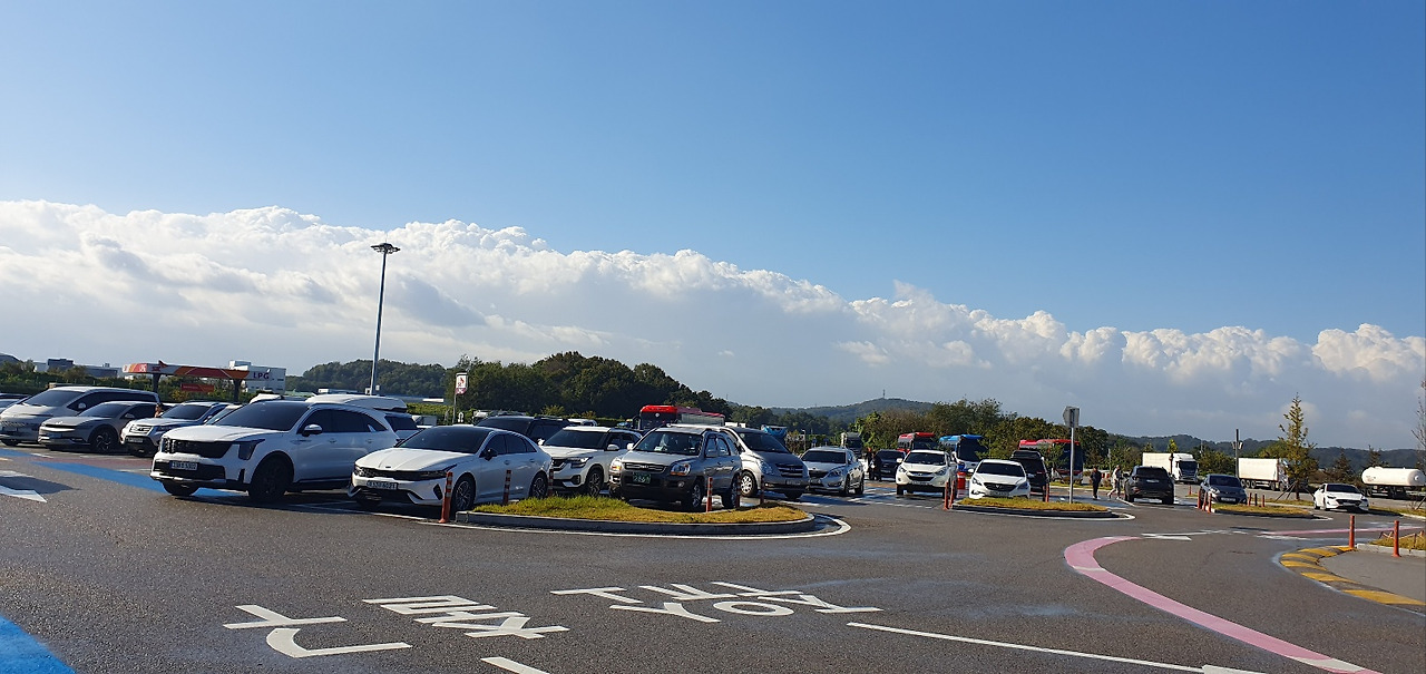 한참을 달려 평택 휴게소(사진)에서 남쪽으로 바라본 구름대는 밀도가 낮은 밝은 구름이다.