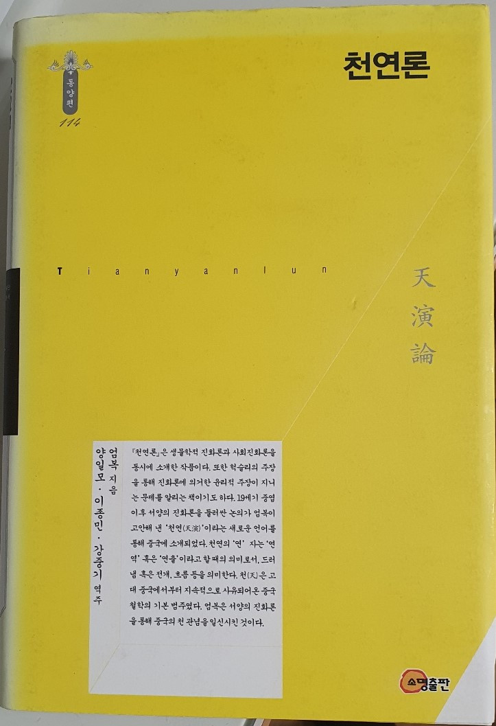 한글판 ‘천연론’은 중국에서 발간된 지 100년이 넘어 2008년에 처음 한국에서 번역된 것이다.