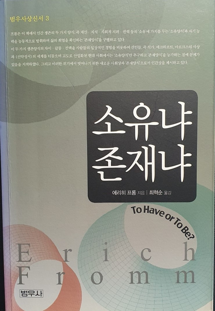 에리히 프롬이 전하는 소유와 존재의 새로운 측면 몇 가지를 옮겨 본다.