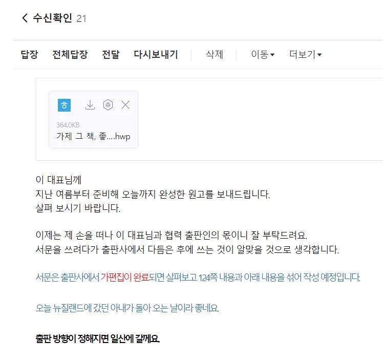 2주 안에 마무리해 원고를 보내겠다고 약속한다.