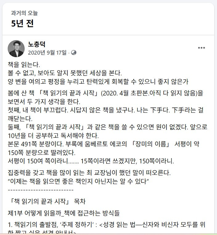 5년 전에 페이스북에 써두었던 글이다. (2020년 9월 17일)