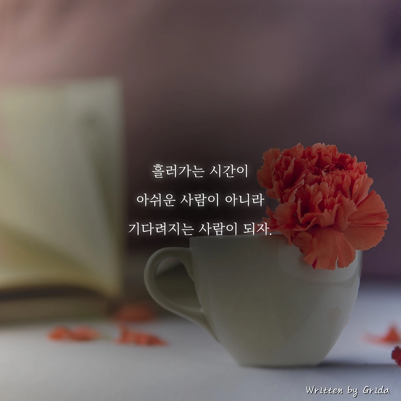 매 순간 최선을 다하지 않은 사람. 아무런 준비 없이 세월의 풍파를 맞아야 하는 사람은 흘러가는 시간이 아쉽게 다가온다. 하지만 하루하루 자신과의 약속을 지키고, 목표에 도전하여 바라는 결과를 이루고자 하는 사람은 시간이 기다려진다.