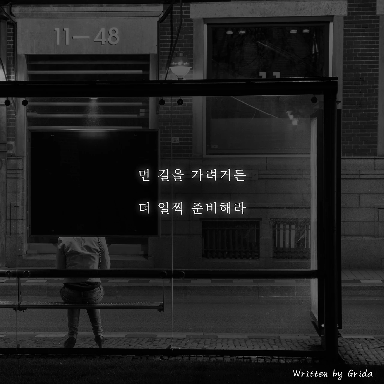 인연이든 목표든, 중간에 내릴 수 없는 긴 여정을 앞두고 있다면 그만큼 미리 준비하고, 앞서서 기다리자. 지금의 신중함과 부지런함은, 훗날 맞이하게 될 시련을 극복하게 해주는 원동력이 되어 줄 테니.