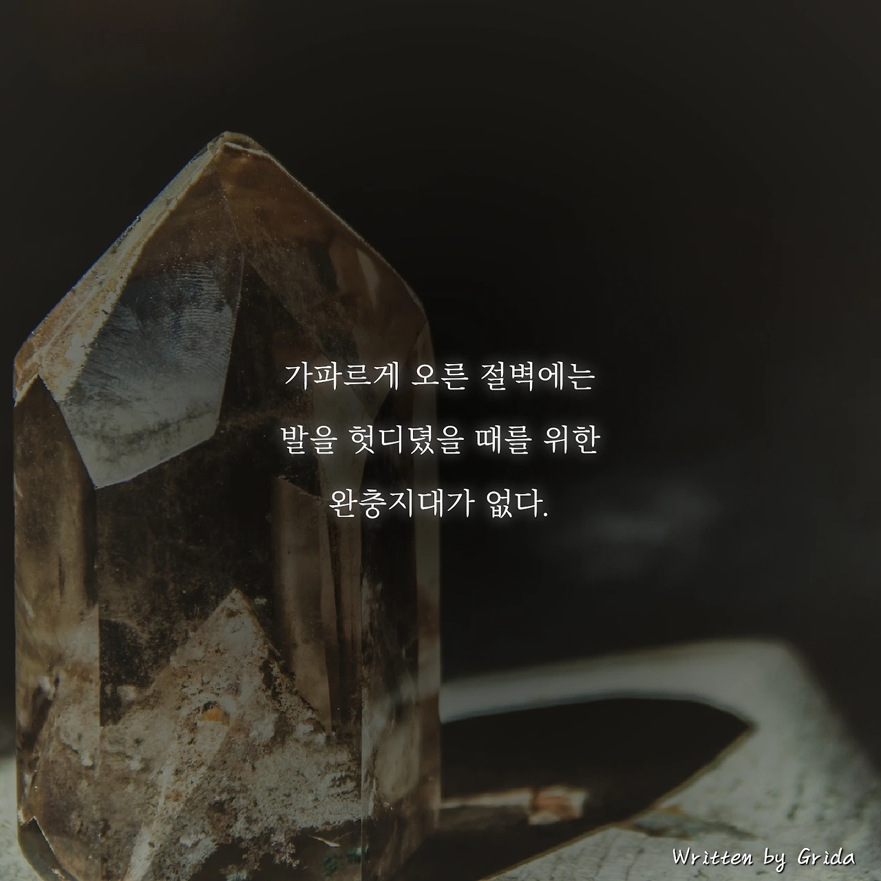나는 최근에 이런저런 뉴스를 보면서 빠르게 유명세를 얻었다가 한 번의 실수로 인해, 달려왔던 속도만큼 빠르게 잊혀가는 사람들을 보면서 생각했다. 가파르게 오른 절벽에는 발을 헛디뎠을 때를 위한 완충지대가 없다고.