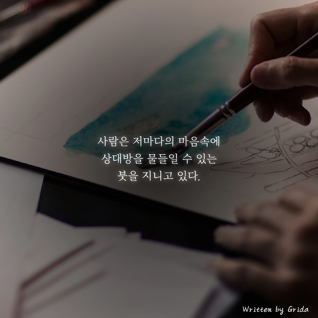 세상에는 근묵자흑이라는 말도, 청출어람이라는 말도 있듯이, 사람은 저마다의 마음속에 상대방을 칠하고 물들일 수 있는 붓을 하나씩 지니고 있다는 생각이 든다.