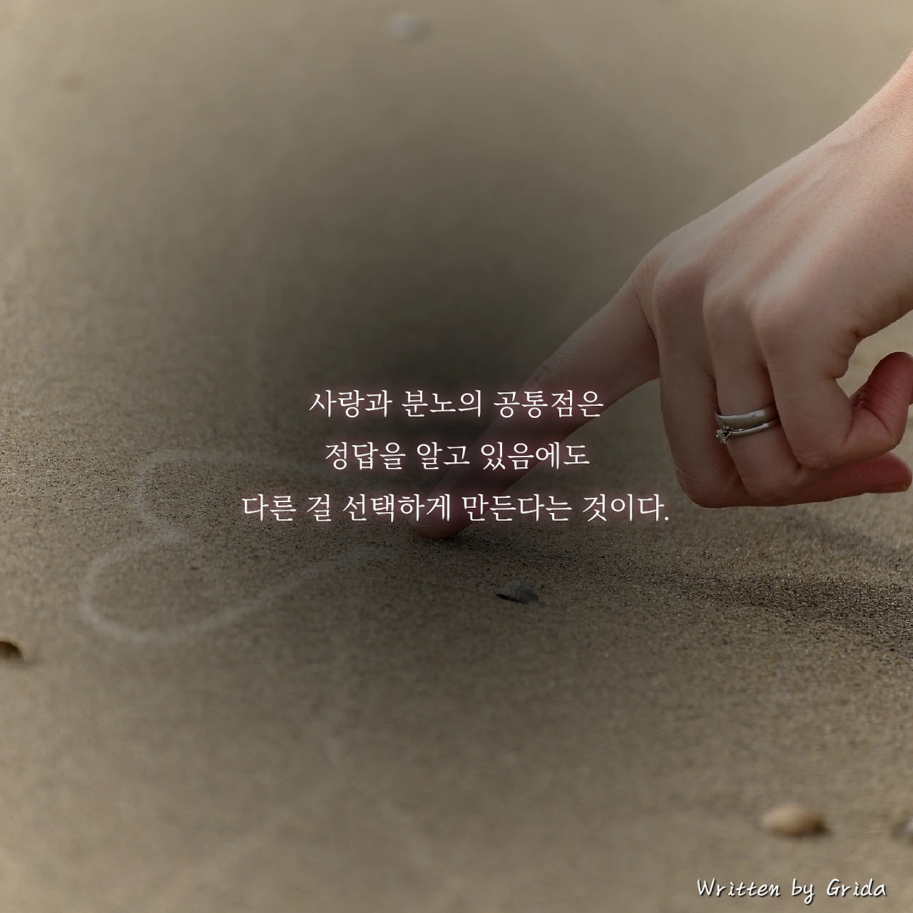 반대로 분노라는 감정은 더 쉽게 나아갈 수 있는 선택이 있음에도, 조급함을 강요하고 순조롭지 못한 선택을 강제한다.