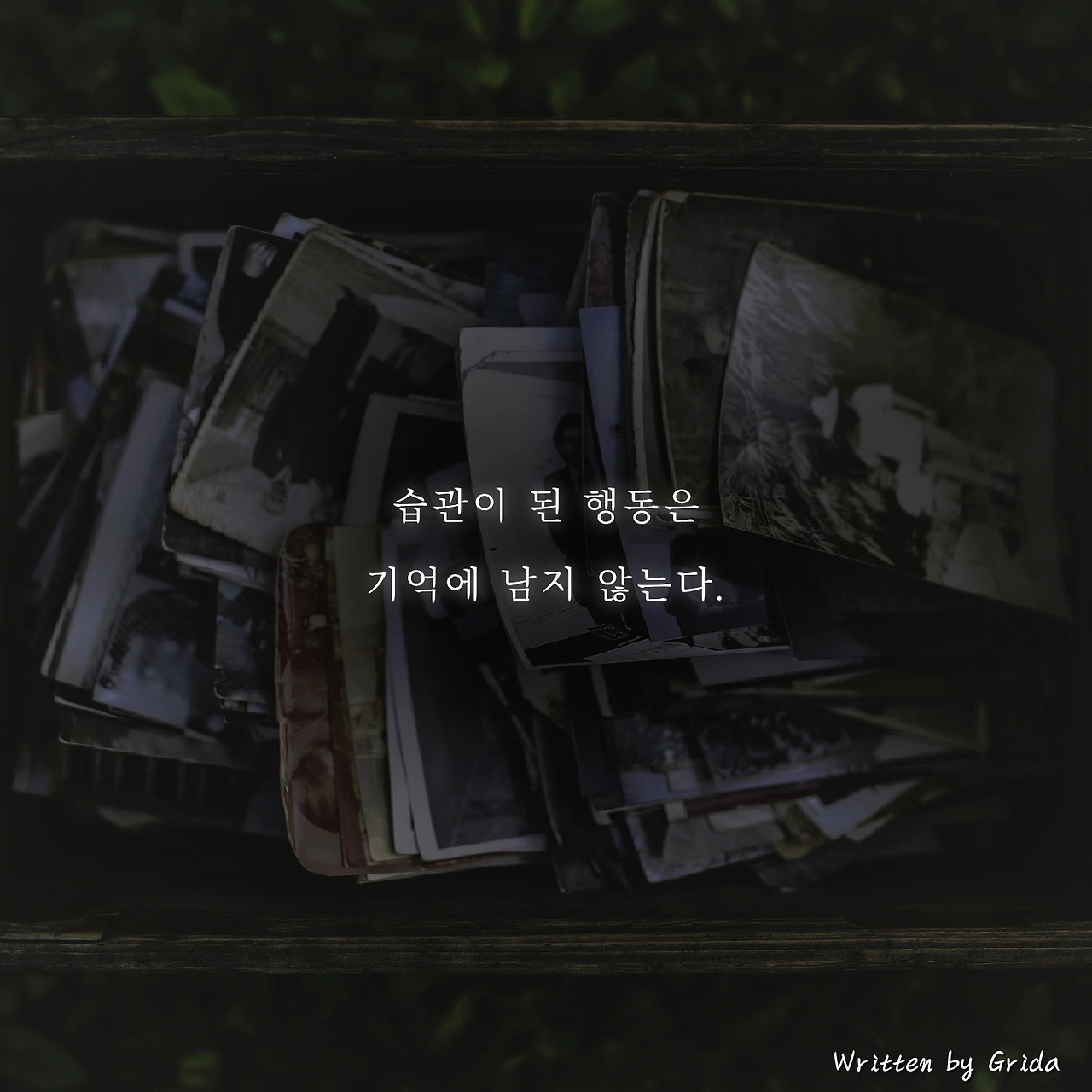 그러고 보면 습관처럼 하는 일들은 전부, 기억이라는 공간 안에서 그리 많은 자리를 차지하지 않는다는 생각이 든다. 밥을 먹거나 산책을 하거나 하는 그런 일상적인 일들이 대표적으로 그런 것이다.