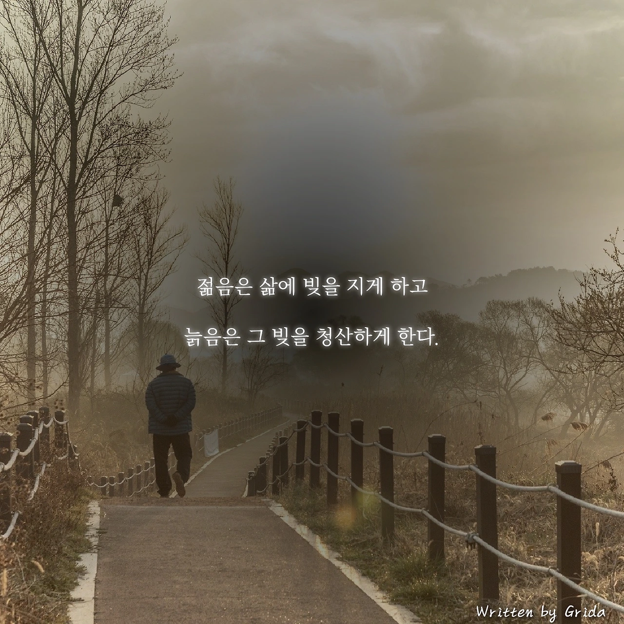 지금에 와서 드는 생각이지만 삶의 시기에 따라 떠올리게 되는 마음이 사뭇 다르다는 느낌이 든다. 젊음은 눈부신 만큼 스스로의 눈을 멀게 만들고, 나이 듦은 황혼의 때에 길게 늘어진 자신의 그림자 앞에서 후회를 하게 만든다는 그런 생각이.